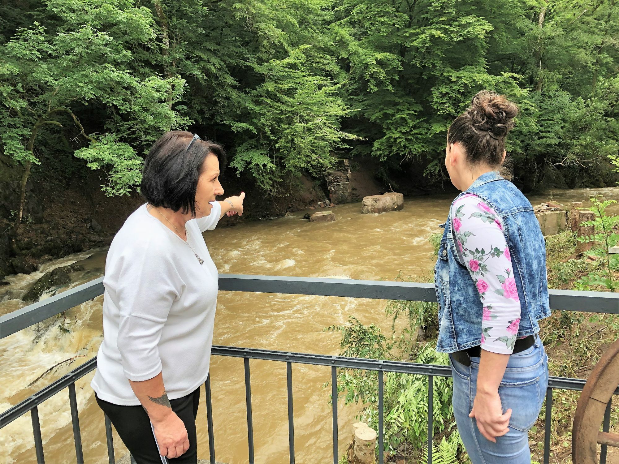 Ein bisschen verliebt ist auch Diana Kebschull. Seit April hat sie den traditionellen Gasthof mit dem urigen Biergarten gepachtet. »Wir sind richtig toll gestartet. Die Wiederöffnung wurde sehr gut angenommen,« erzählt sie. 75 Prozent ihrer Gäste kämen dabei über den Lieserpfad, schätzt Kebschull. Zumindest war das vor dem Hochwasser so. Nun haben die Lieserfluten die Gehwegbrücke einfach fortgerissen. Auch die Betonpfeiler sind beschädigt. Diana Kebschull erinnert sich an den Abend der Flut: »Gegen 23 Uhr hatte sich die Lieser schon in einen reißenden Fluß verwandelt, als sich ein großer Treibholzstamm im Geländer verfing. Dann ging alles ganz schnell. Die Flutgewalten rissen die Brücke einfach weg und fast schlagartig stand auch das Gelände unter Wasser.« Eigentlich hat Diana Kebschull ihr Lokal an diesem Abend gar nicht geöffnet, will wegen der Wetterprognose nur kurz nach dem Rechten sehen. Auch Eigentümer Thomas Sausen ist schnell vor Ort und kümmert sich. »Wir hatten noch Glück im Unglück, denn das Mühlengebäude blieb größtenteils vom Wasser verschont,« sagt Sausen, der auch einen Tag später noch in Arbeitskluft und Gummistiefeln auf dem Gelände unterwegs ist, um es zu sichern. Zwar ist der traditionelle Gasthof immer noch von der Straßenseite her erreichbar, trotzdem hoffen Besitzer und Pächterin auf eine Lösung, die viel genutzte Verbindung zwischen Eifelsteig und Lieserpfad schnell wieder herstellen zu können.