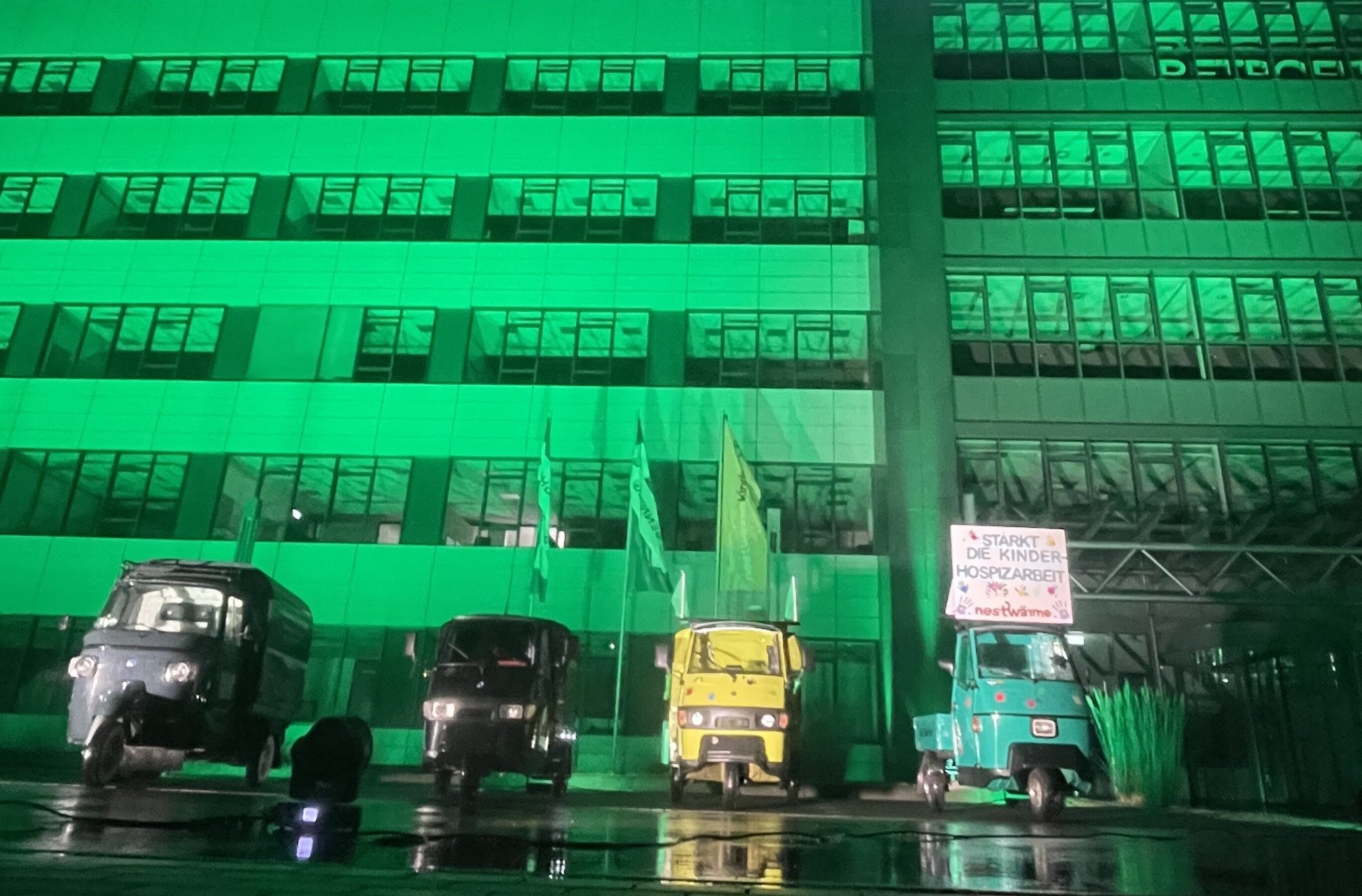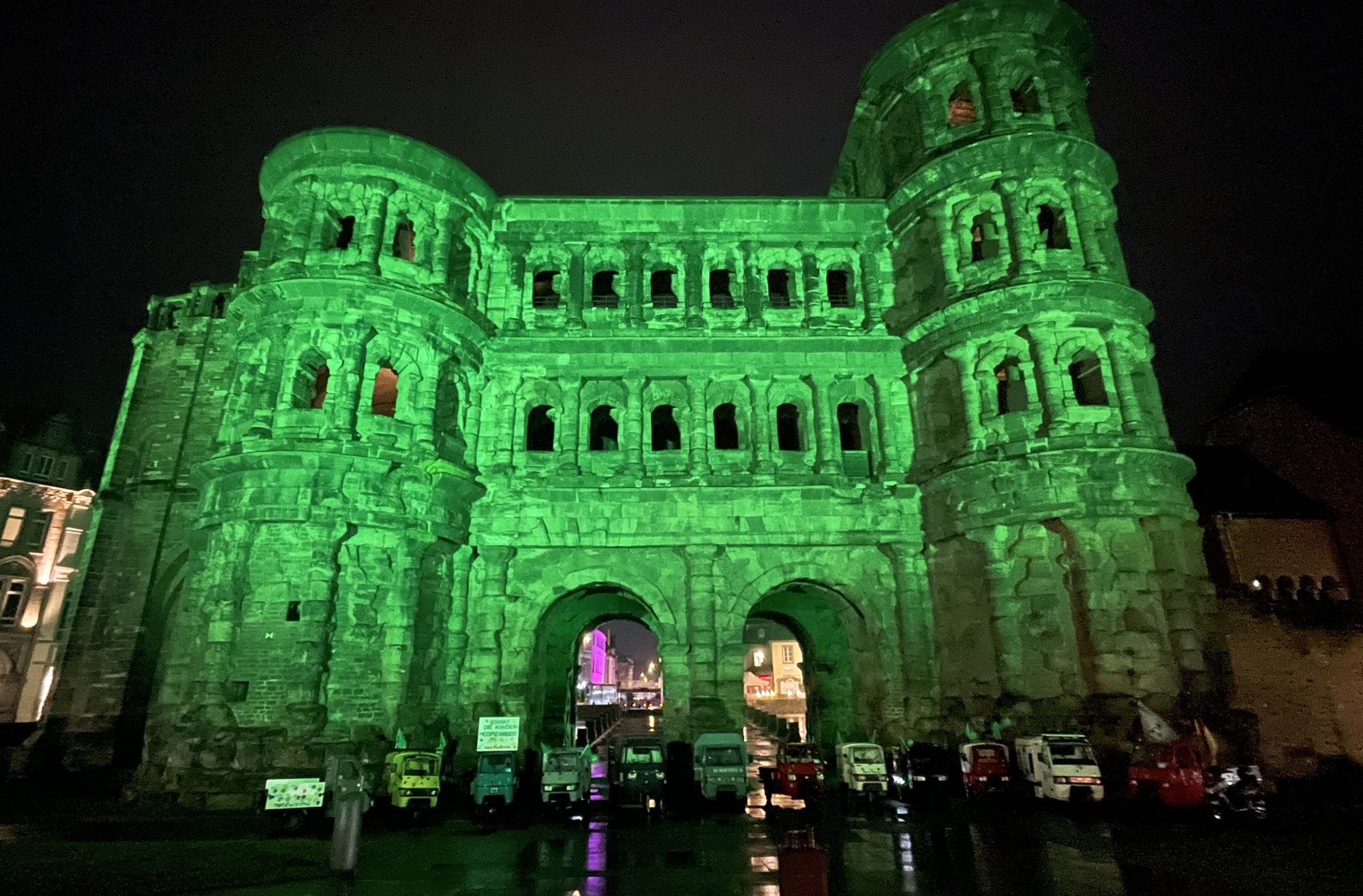 Ein besonderes Highlight für die engagierten Akteure war der Fototermin vor der grün beleuchteten Porta Nigra in Trier und vor dem Werk Benninghoven in Wittlich. Grün unterstreicht in seiner leuchtenden Farbe die Verbundenheit mit allen Akteuren der Kinder- und Jugendhospizarbeit sowie die Solidarität mit den Familien.