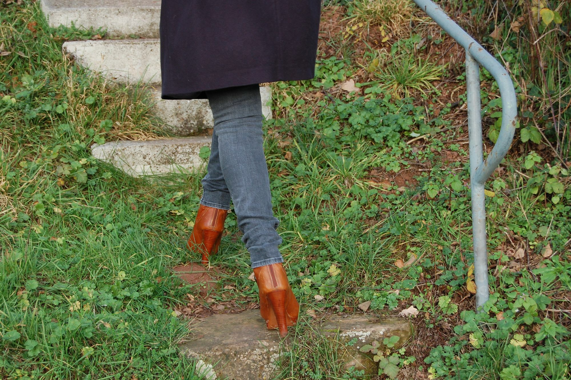 Allein das Schuhwerk ließe vermuten, dass Yvonne vergessen hat, wie es in der Natur Salmrohrs aussieht. Doch sie beherrscht das Kunststück, elegant auf high heels die matschig-feuchten Stufen hinauf zur Kapelle zu schreiten. Wie aus dem Ei gepellt steht sie im schmeichelnden Licht des sonnigen Dezembertages vor der Kamera. Im Hintergrund ländliche Idylle einschließlich einiger Muhs und Mähs von den nahen Weiden.