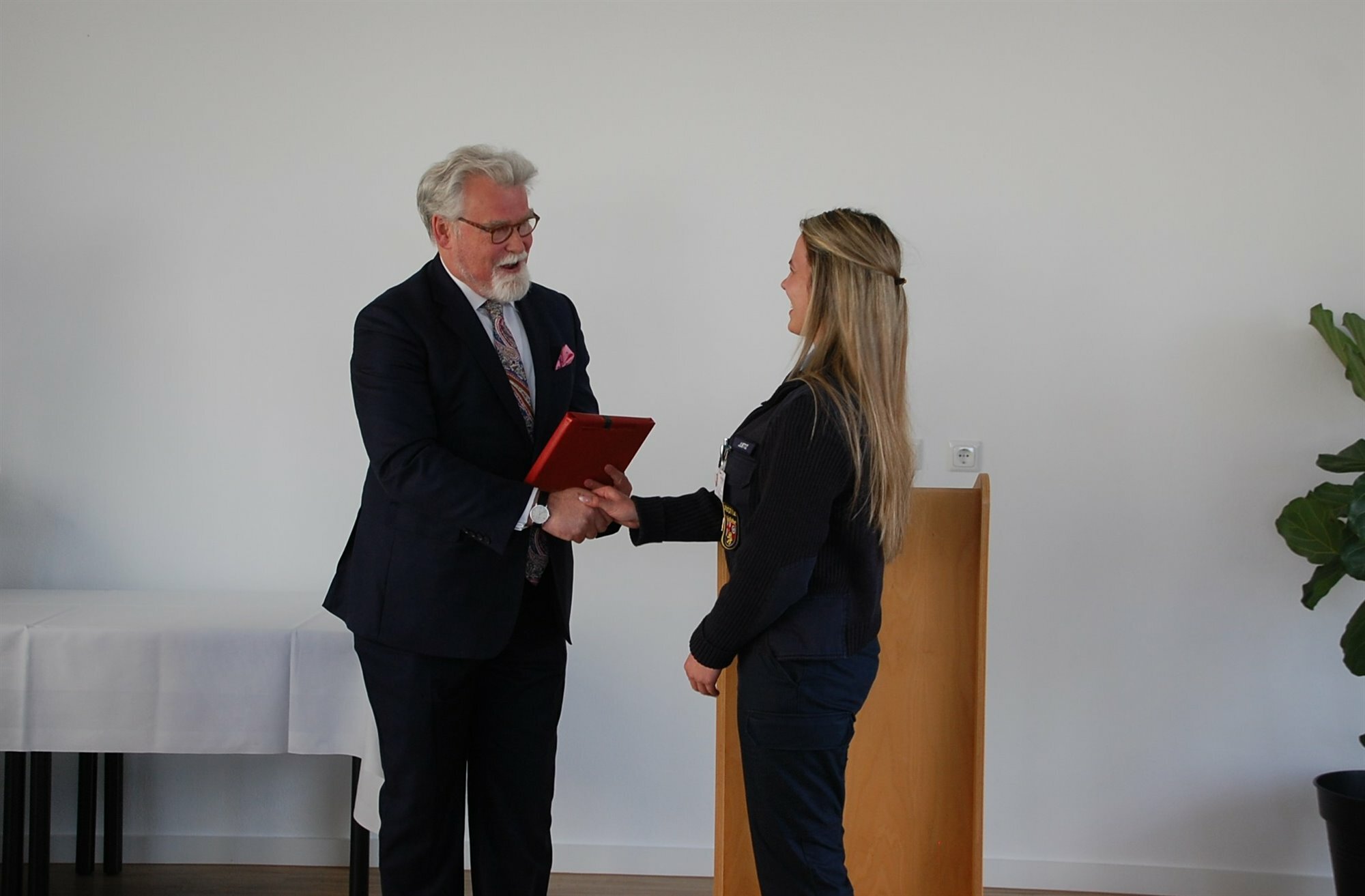 Hierfür benötigt man Ihre individuelle Einschätzung der Situation, Ihre Erfahrung und nicht zuletzt Ihre zupackenden Hände!" Abschließend rief Minister Mertin die Absolventinnen und Absolventen dazu auf, den Justizvollzug bei der Nachwuchsgewinnung zu unterstützen: "Die Justizvollzugsanstalten unternehmen bereits erhebliche Anstrengungen, um neue Mitarbeiterinnen und Mitarbeiter für den Justizvollzug zu gewinnen, sei es durch Bewerbertage, die Teilnahme an Berufsfachmessen oder Auftritte in den sozialen Medien. Aber auch Sie sind ein wichtiger Baustein der Nachwuchsgewinnung. Sie sind ein Aushängeschild des Justizvollzugs und Ansprechpartner für etwaige künftige Kolleginnen und Kollegen. Nutzen Sie die Gespräche mit Freunden, Verwandten und Bekannten und werben Sie für den Justizvollzug."