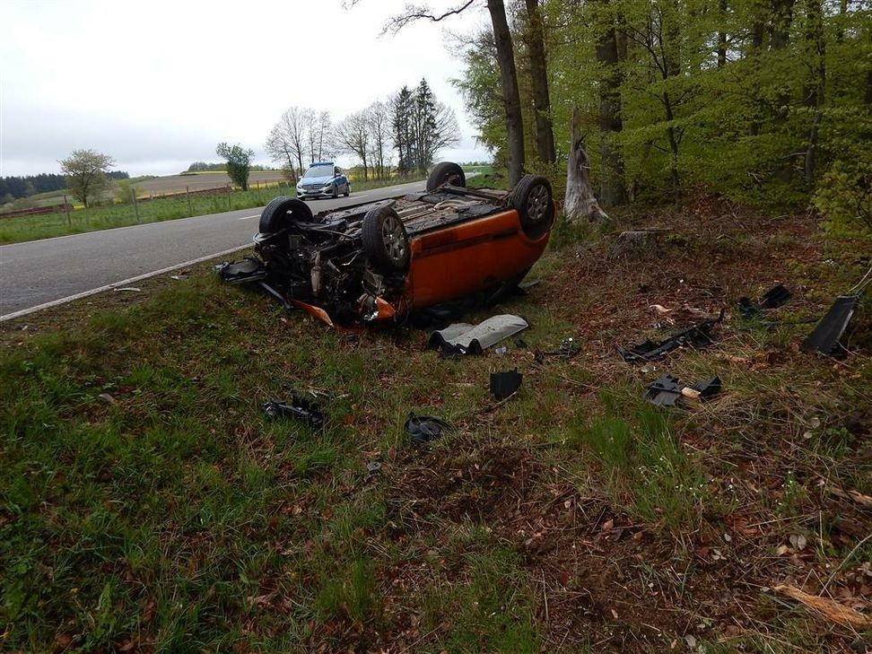 Am Sonntagmorgen, 6.30 Uhr, ereignete sich auf der Kreisstraße zwischen Hunsrückhöhenstraße und Lötzbeuren ein Verkehrsunfall. Das Fahrzeug wurde neben der Fahrbahn auf dem Dach liegend aufgefunden. Vor Ort wurden keine Personen angetroffen. Der Fahrer des Autos konnte jedoch ermittelt und bei seiner Wohnung angetroffen werden. Er gab an, dass er alleine im Auto unterwegs war. Der junge Mann verlor die Kontrolle über sein Auto und kollidierte mit einem Baum neben der Fahrbahn. Die Beamten konnten während der Unfallaufnahme Alkoholgeruch beim Fahrer feststellen. Zudem ist der Fahrer nicht im Besitz eines gültigen Führescheins. Dem Mann wurde im Krankenhaus Zell eine Blutprobe entnommen und er wurde stationär aufgrund seiner Verletzungen aufgenommen. Ihn erwarten mehrere Strafverfahren. (PI Zell/red).