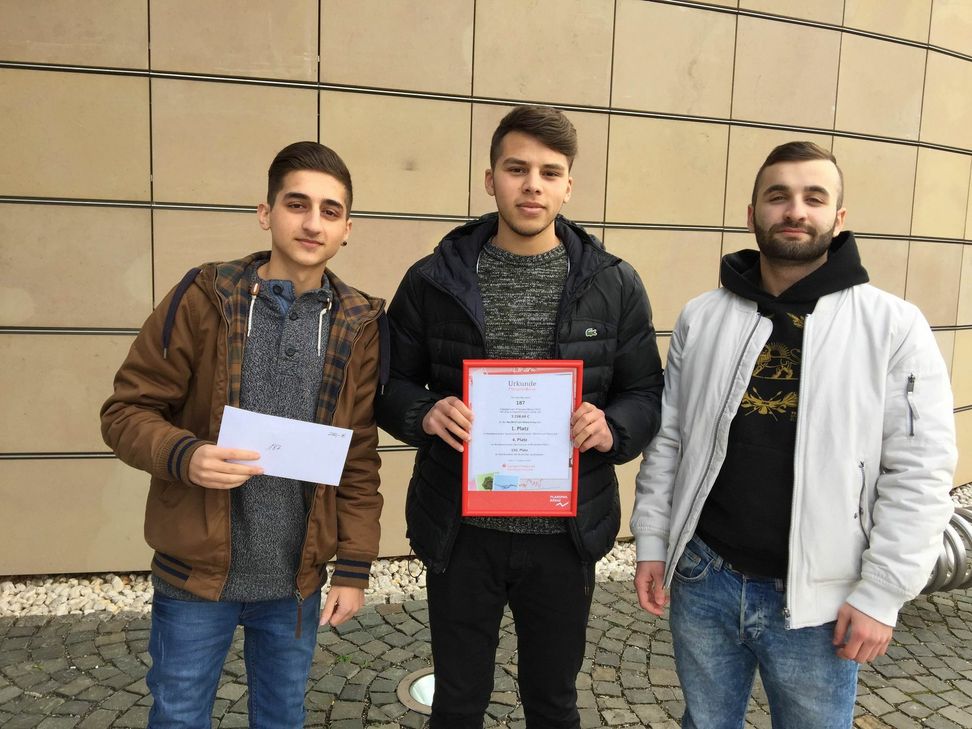 Auch in diesem Schuljahr nahm die BBS Bernkastel-Kues wieder mit mehreren Spielgruppen am Planspiel Börse der Sparkassen teil. Dabei war die Spielgruppe „187“ (Betreuer: Christian Schartz) unter der Leitung von Alican Yenisel aus der Klasse HBF 14a besonders erfolgreich. Mit seinen Spielpartnern Imad El-Arja (ebenfalls HBF 14a) und Dariush Mokbehri (HBF 15c) gelang es ihm, mit einer nachhaltigen Strategie unter Berücksichtigung gesellschaftlicher und ethischer Ausschlusskriterien, das fiktive Startkapital von 50.000 Euro in 3 Monaten um knapp 6,5 Prozent zu vermehren. Dies bedeutet auf ein Jahr hochgerechnet eine Rendite von 26 Prozent. Am Ende landeten Alican, Imad und Dariush aufgrund des konsequenten Festhaltens an ihrer Strategie – unabhängig von zwischenzeitlichen Schwankungen der Börse - auf dem 1. Platz im Nachhaltigkeitswettbewerb der Sparkasse Mittelmosel. Im Bild von links: Alican Yenisel, Imad El-Arja und Dariush Mokbehri nach der Übergabe von Siegerurkunde und Preisgeld in Höhe von 250 Euro. Foto: FF