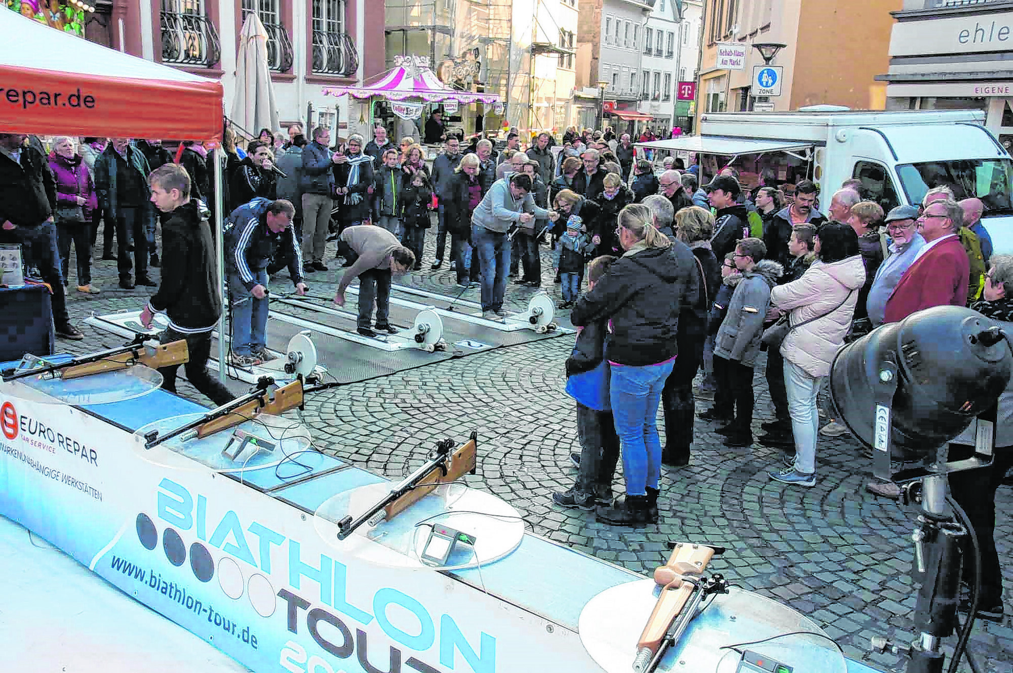 Eingeladen vom Team des Wittlicher Stadtmarketings wird die Biathlon-Tour zum Mitmachevent für alle Neugierigen am verkaufsoffenen Sonntag. Mit der mobilen Biathlonarena auf dem Wittlicher Marktplatz werden von 13-18 Uhr die besten Biathleten/innen Wittlichs ermittelt und der Preis der Finalteilnahme im Weltcuport Oberhof an die/den Tagesbeste/n vergeben.
