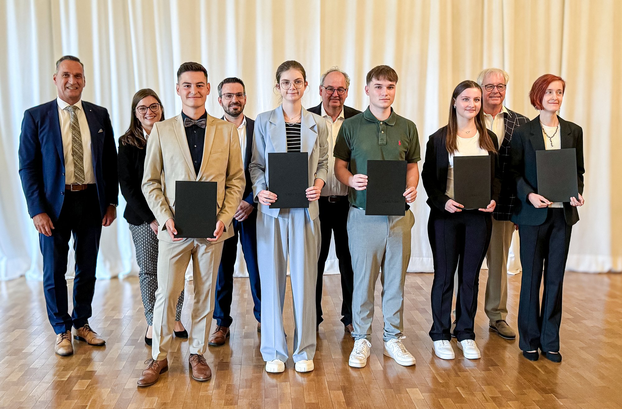 Ausgezeichnet wurden Florian Finn (Clara-Viebig Realschule plus) und Liana Michaelis (Kurfürst-Balduin Realschule plus) mit jeweils 2.250 Euro, Julian Gräf (Berufliches Gymnasium) und Jette Benz (Cusanus Gymnasium) mit jeweils 4.000 Euro.