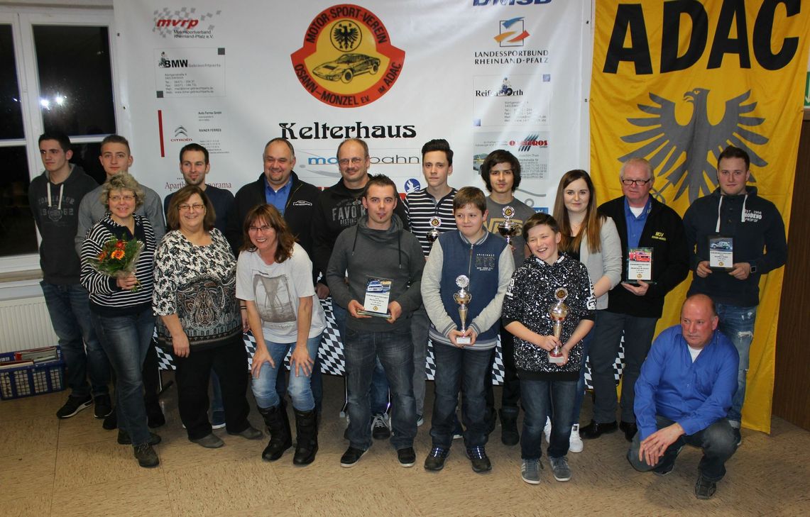 Bei der Vereinsmeisterehrung 2016 des Motor-Sport-Vereins (MSV) Osann-Monzel e. V. gab es nicht nur zahlreiche Pokale, Urkunden und Sachpreise, sondern auch wichtige Ehrungen langjähriger und besonders engagierter Mitglieder. Moderiert wurde die Veranstaltung von Manfred Bläsius. Bilder und Filme von den Motorsportlern und wichtigen Ereignissen boten die passende Untermalung. Der 1. Vorsitzende Ottmar Sailer übergab gemeinsam mit Sportleiter Manfred Bläsius Auszeichnungen in verschiedenen Motorsportsparten, von Kartslalom über Kart-Rundstrecke, Automobilslalom, Bergrennen, Touristikmeisterschaft bis hin zur Sparte Rallye. Der jeweils 1. Platz der verschiedenen Kategorien ging an folgende Mitglieder des MSV: Kart-Slalom: Nils Gorges; Kart-Rundstrecke: Fabian Ferres; Automobil-Slalom: Manfred Bläsius; Slalomsport Damen: Michelle Bläsius; Bergrennen: Patrick Orth; Rallye: Dennis Zenz; Touristik: Ottmar Sailler. Der Helferpokal des MSV ging an Dirk Dusemund. Maria Jakobi wurde für 10 Jahre Mitgliedschaft im MSV geehrt. Ebenso eine Auszeichnung erhielt Burghild „Burgi“ Stock für ihre langjährige Tätigkeit als Vereins-Photographin sowie Ralf Orth mit der Ewald-Kroth-Medaille in Bronze für Verdienste um den Motorsport. Foto: FF