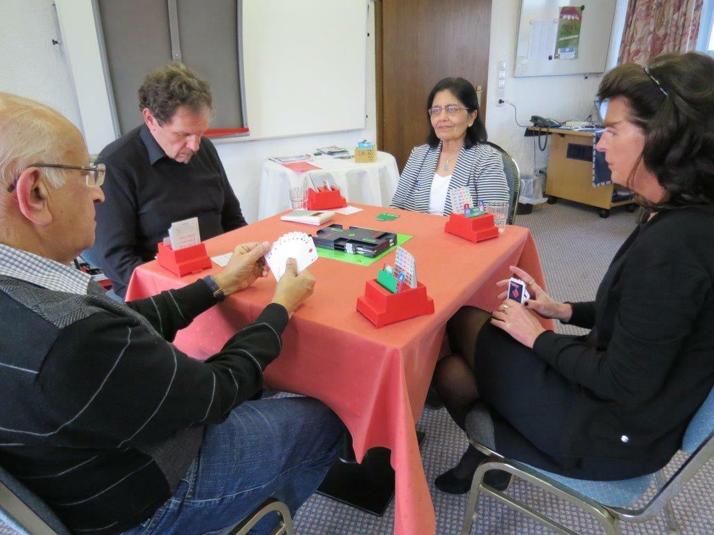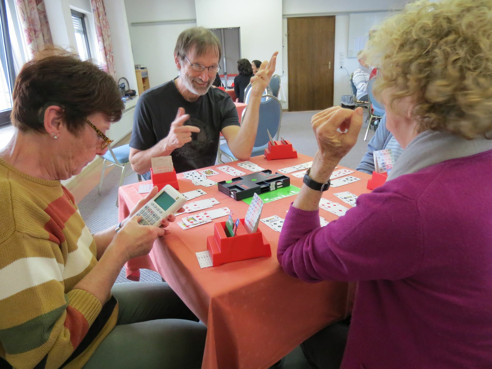 Bernkastel-Kues. Jeden Freitag treffen sich die Bridgespielerinnen und -spieler im Dachgeschoss des Hotels Moselpark auf dem Kueser Plateau. Ein internationales Grüppchen kommt da zusammen: Frauen und Männer aus Polen, aus Pakistan, Schottland und Deutschland haben sich im Bridgeclub Mittelmosel gefunden, um ein Kartenspiel zu genießen, für das die Bezeichnung »Spiel« nicht so recht zutreffend ist. »Hier geht es nicht ums Glück«, verrät Ingrid Schlömann, die als eine Art Außenministerin des Vereins fungiert. Es geht vielmehr um eine geistig äußerst anspruchsvolle Freizeitbeschäftigung mit sportivem Hintergrund, erklärt sie. Es geht um Mathematik und Logik, natürlich, aber ebenso um Psychologie, um Teamgeist, und alles das in geselliger Runde. Jeweils vier Spieler gestalten in Zweierteams eine Runde des Spiels. Das Einzigartige am Bridge: Im Lauf eines Nachmittags wandern identische Kartendecks von Tisch zu Tisch. Komplizierte Regeln Gewonnen hat am Ende, wer aus dem, was allen Spielern einmal geboten wird, das Beste macht. »Es ist also völlig unerheblich, ob Sie gute oder schlechte Karten haben.« Die Punktevergabe erfolgt nach der Anzahl der gewonnenen Stichen, nicht nach der Punkthöhe der Einzelkarten wie Dame, König oder As. Jedes Turnier hat ein Siegerpaar. Die Punkte können, müssen aber nicht gesammelt werden. Sammelt ein Team Punkte, werden sie weitergereicht an den Deutschen Bridgeverband. Die Mittelmosel spielt mit einem Paar in der Landes- und mit einem weiteren in der Regionalliga. Noch eine Besonderheit hat das Bridgespiel zu bieten: Anders als beispielsweise beim Skat, bei dem die Spielenden oft ganze Kneipen mit ihrem aufgeregten Getöse erfüllen, herrscht beim Bridge konzentrierte Stille. Hier wird stundenlang geschwiegen. Niemand weiß, was der andere auf der Hand hat. Auch das Blatt des Mitspielers bleibt unbekannt. Nonverbal, damit der Nebentisch keinerlei Informationen erhaschen kann, wird dennoch versucht, möglichst viel über die Karten der Mit- und Gegenspieler zu erfahren, unter anderem mit Bietkarten. Die Regeln sind vielfältig und kompliziert und erschließen sich dem unbedarften Besucher auf die Schnelle nicht. Kein Wunder, benötigen Anfänger doch ein bis anderthalb Jahre, bis sie halbwegs flüssig am Spielgeschehen teilnehmen können. Ingrid Schlömann brennt für ihre Leidenschaft. Gemeinsam mit ihrem Mann Jürgen, dem Sportwart des Mittelmosel-Clubs, spielt sie mindestens zweimal pro Woche, dienstags in Traben-Trabach, freitags in Bernkastel-Kues. Seit seiner frühen Pensionierung - als Fluglotse ging er mit 55 Jahren in den Ruhestand - widmet sich Schlömann ebenso leidenschaftlich wie seine Gattin dem Bridgespiel. Mit Erfolg, wie ein Blick auf die Homepage zeigt: 2011, 2014, 2015 und 2016 gehörte Jürgen Schlömann zum Clubmeister-Team. Mit dem Morbacher Ferdinand Scheit hat man an der Mittelmosel sogar einen Bridge-Lehrer mit im Boot. Vor drei Jahren bewies er gemeinsam mit Schlömann seine Klasse im Challenger-Cup. »Da waren wir echt gut.« So gut, dass auch seine Frau es jetzt ernsthaft versucht mit dem Bridge. Und diesmal »am Ball« bleiben möchte. (pug) Extra: 2011 startete der Bridegclub Mittelmosel mit 31 Mitgliedern, die zwischen Zell und Trier wohnen. Immer wieder kommen neue hinzu, was u.a. an den Anfängerkursen liegen dürfte. Im Herbst begann der aktuelle Lehrgang. Die meisten Mitglieder sind ältere Damen und Herren: Für Bridge muss man einfach viel Zeit mitbringen. Nicht nur das Erlernen der vielen Regeln und der teilweise aus dem Englischen und Französischen entlehnten Fachvokabeln dauert seine Zeit; auch das Spiel an sich verlangt einen nicht unerheblichen Zeitaufwand. Gemeinsame Club-Aktivitäten (Weihnachts-, Sommerfest, Nikolausturnier) ergänzen den sportlich-ehrgeizigen Aspekt des Bridge-Spiels. Der jährliche Mitgliedsbeitrag beträgt 65 Euro; Ansprechpartnerin ist Ingrid Schlömann, Telefon 0 65 31 / 97 31 48, bridge-mittelmosel@ t-online.de. www.bridge-mittelmosel.de Beim Bridge werden französische Karten (52 Blatt, ohne Joker) verwendet. Beim Reizen wird in einer Art Versteigerung ermittelt, welches Paar wie viele Stiche machen muss und ob es eine Trumpffarbe gibt. Nachdem sich ein Paar mit einer Ansage von Stichzahl und Trumpffarbe durchgesetzt hat, erfolgt in der zweiten Phase das Abspiel der Karten. Hauptziel ist es für die eine Seite, mindestens ihre angesagte Stichzahl zu erreichen; die andere Seite muss dies verhindern. Eine Besonderheit des Bridge ist, dass von der Partei, die die Reizung gewonnen hat, nur ein Spieler im Abspiel spielt, während sein Partner nach dem ersten Ausspiel des linken Gegners seine Karten offen auf den Tisch legt und seine Karten auf Anweisung des Alleinspielers zugibt. Bridge wird im Turnier als Sport ausgeübt.