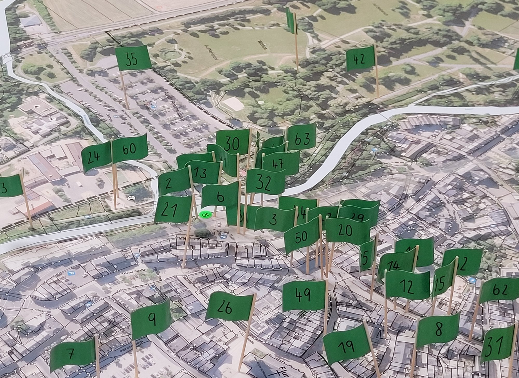Vergangene Woche fand hierzu eine gut besuchte Öffentlichkeitsveranstaltung im Rathaus statt. An mehreren thematischen Arbeitstischen hatten die Teilnehmenden die Möglichkeit, ihre Ideen und Hinweise zur zukünftigen Gestaltung der Innenstadt einzubringen und diese direkt in Plänen zu verorten. Darüber hinaus konnten persönliche Wohlfühlorte auf einer Karte markiert werden, um aufzuzeigen, welche Plätze in Wittlich als besonders wichtig empfunden werden.