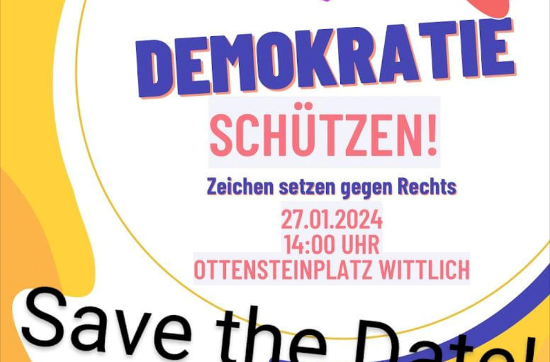 Es geht um Demokratie, Protest gegen die AfD und um Menschenrechte: "Demokratie schützen! Zeichen setzen gegen Rechts!" lautet das Thema am Samstag, 27. Januar, 14 Uhr auf dem Ottensteinplatz in Wittlich. Eingeladen hat u.a. die Gruppe "Solidarisches Wittlich". "Bernkastel-Kues zeigt Farbe" heißt es auf Initiative des Kreisverbandes von Bündnis90/ie Grünen am Sonntag, 28. Januar, 11 Uhr auf dem Forumsplatz in Bernkastel-Kues."Nie wieder ist jetzt" lautet das Motto am Sonntag, 28. Januar, ab 14 Uhr vor der Porta Nigra in Trier. Veranstalter ist hier ein breites Trierer Bündnis "Gemeinsam für Demokratie".