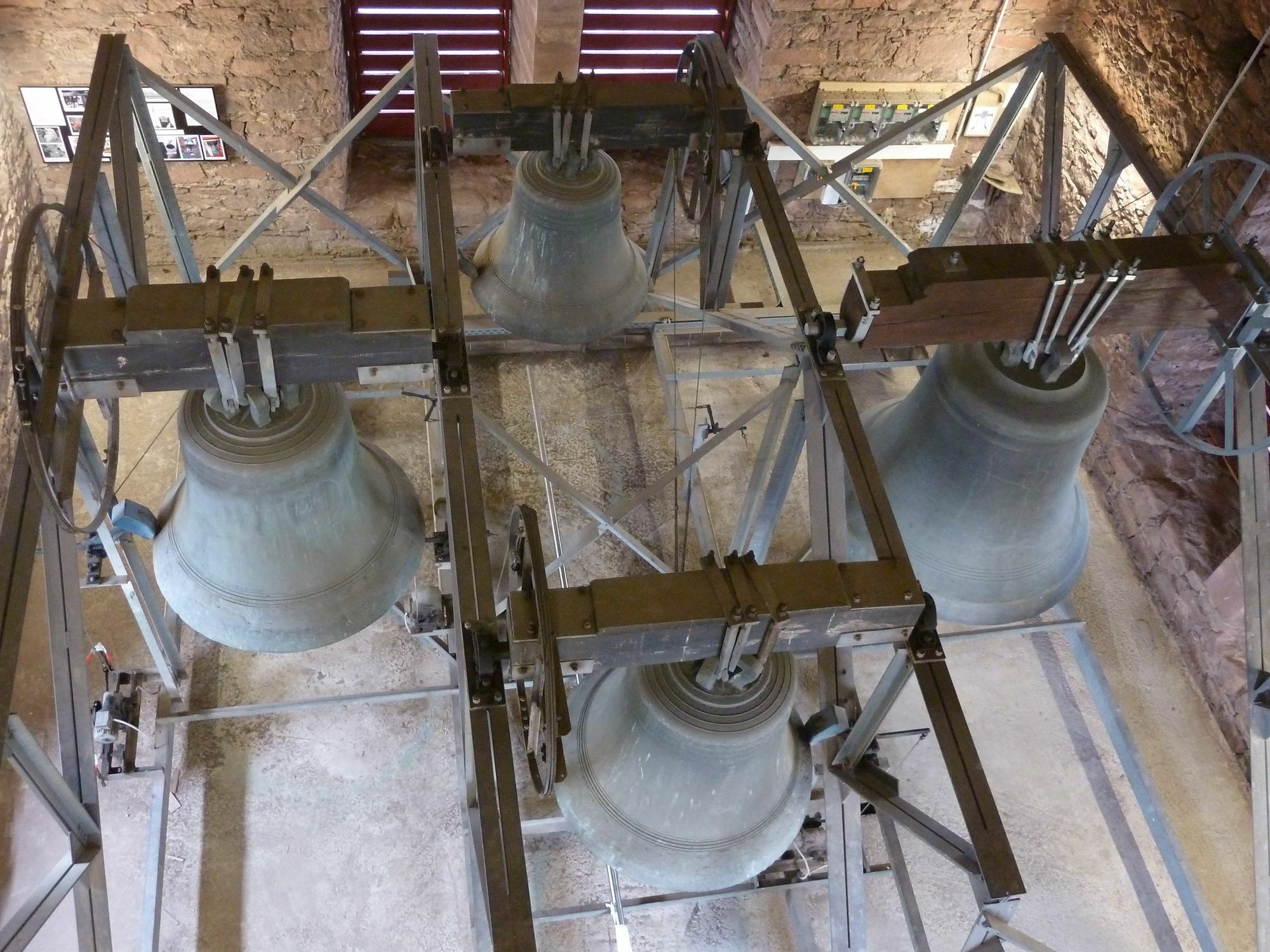 Der Anlass ist der Namenstag der großen Glocke, die nach dem Heiligen Rochus benannt ist, dem Stadtpatron Wittlichs. Deshalb der Soloauftritt. Seit über drei Jahrhunderten hängen drei Glocken des Meisters Matthias Freywaldt aus Eisenschmitt in der Glockenstube des Turms: Die Markusglocke (Ton d‘, ca. 1.400 kg), die Maria- und Johannesglocke (Ton f‘, ca. 1.000 kg) und die Sebastian- und Donatusglocke (Ton g‘, ca. 680 kg). Sie wurden 1708 gegossen und haben in der Fachwelt eine ganz besondere Bedeutung, da es –trotz zweier Weltkriege- das einzige erhaltene Gesamtgeläut des Meisters ist. Es ist ein großer Glücksfall für St. Markus, als eine der wenigen Kirchen in Rheinland-Pfalz ein bedeutendes komplett erhaltenes barockes Klangdenkmal zu besitzen. Im Jahr 2004 endlich war es möglich durch den Guss einer großen Bassglocke bei der Glockengießerei Mark in Brockscheid, den drei historischen Glocken das musikalische Fundament zu geben. Diese neue Glocke ist auf den tiefen Ton b gestimmt und wiegt etwa 2.000 Kilogramm. Man gab ihr den Namen des Wittlicher Stadtpatrons. So wie die Kölner ihren „dicken Pitter“ haben, so besitzen die Wittlicher, in bescheidenerem Ausmaß, ihre „dicken Rochus“! Für Interesse besteht die Möglichkeit das Namenstagsläuten der Rochus Glocke am 16. August live in der Glockenstube zu erleben. Anmeldungen bitte unter Telefon 06571/6806. Foto: J.Krieg