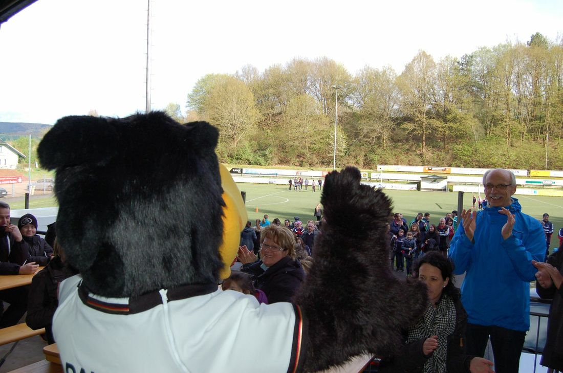 Die Jubiläumsveranstaltung im Gebiet des Fußballverbandes Rheinland (FVR) und speziell an der unteren Salm – die Jugendspielgemeinschaft umfasst insgesamt zehn Dörfer – kam nicht von ungefähr, schließlich ist der FVR von der ersten Stunde an in Sachen DFB-Mobil aktiv. Das betonte auch Verbandspräsident Walter Desch: „Wir haben hier auf der Geschäftsstelle und mit unseren Teamern unglaublich motivierte Leute, die dieses Projekt leben. Wir kommen zu den Kindern und holen sie zu Hause ab.“ Qualifizierung wird gerade in und um Dörbach groß geschrieben, wie Uwe Max, der sportliche Leiter der JSG, in der von Florian Huber moderierten Talkrunde unterstrich: Nicht weniger als 27 Trainer und Betreuer von der A-Jugend bis zu den Bambini absolvieren seit Oktober eine dezentrale Ausbildung. Über die Basiswissen- und Teamleiter-Lehrgänge sollen Ende Juni alle schließlich ausgebildete C-Lizenz-Inhaber sein. „Bei uns soll jedes Kind Fußball spielen können. Die Trainer sollen über das passende Rüstzeug verfügen, um sie auch weiter bringen zu können“, so Max. Trotz der dörflichen Strukturen in und um Dörbach sind nicht weniger als 200 Kinder und Jugendliche in der JSG organisiert. In 14 Mannschaften bestreiten sie Punktspiele in den jeweiligen Ligen.