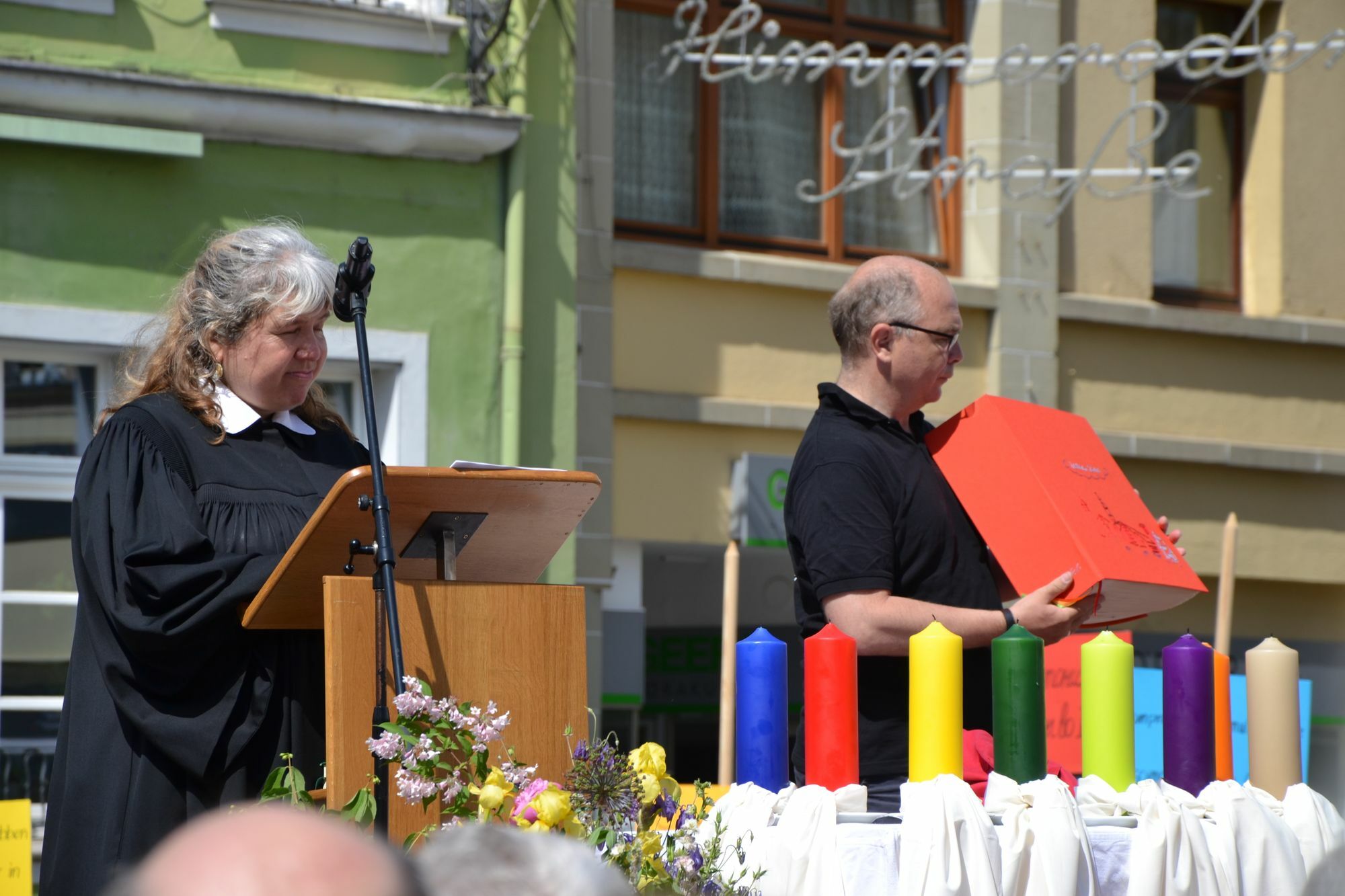 "Einander verstehen": Unter diesem Motto feierten bei herrlichem Sonnenschein etwa 750 Wittlicher Christen einen stimmungsvollen Ökumenischen Gottesdienst an Pfingstmontag auf dem rappelvollen Marktplatz. Der Ökumene-Ausschuss der evangelischen Kirchengemeinde und der katholischen Pfarreiengemeinschaft hatte eingeladen, die vor zehn Jahren geschlossene Partnerschaftsvereinbarung gebührend zu feiern.