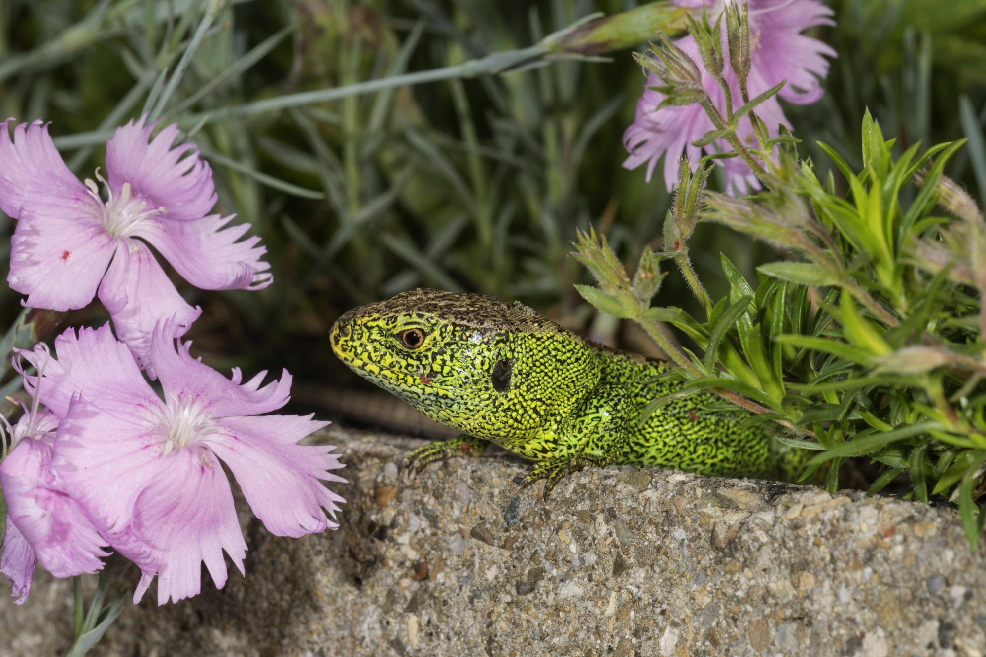 Zauneidechse, Schlingnatter, Kammmolch, Gelbbauchunke und Kreuzkröte.