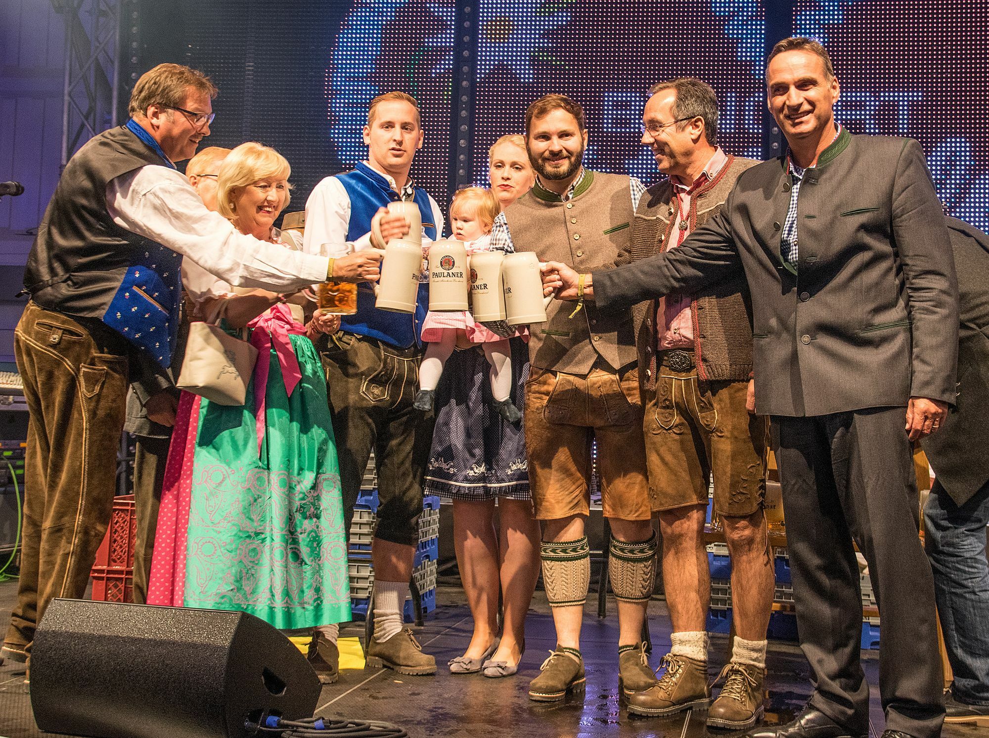 Landrat Gregor Eibes hatte beim Fassanstich die Nase vorn: Nach zwei Schlägen war das erste Fass Oktoberfestbier angeschlagen. Allerdings auch nur einen Schlag mehr benötigte Wittlichs Bürgermeister Joachim Rodenkirch, um das erste Bitburger „ans Laufen“ zu bringen. Traditionell wurden die ersten Fässer als Freibier ausgeschenkt. Die Besucher drängten dann auch zur Bühne, um mit einem „Prosit der Gemütlichkeit“ das Jubiläums-Oktoberfest lautstark zu eröffnen. Zuvor hatte Festwirt Winfried Bungert Ehrengäste und Besucher im „niegelnagelneuen“ Festzelt willkommen geheißen. Mit einer Länge von 100 Metern, einer Höhe von 11,20 Metern sowie einer Breite von über 30 Metern hat sich das Raumvolumen gegenüber dem alten Zeltbau mehr als verdoppelt. Damit ist auch dann für gute Luft gesorgt, wenn mit 4.200 Besuchern das Zelt ausverkauft ist. Von den insgesamt 17 Veranstaltungen sind die meisten bereits ausverkauft. Foto: J.Hank