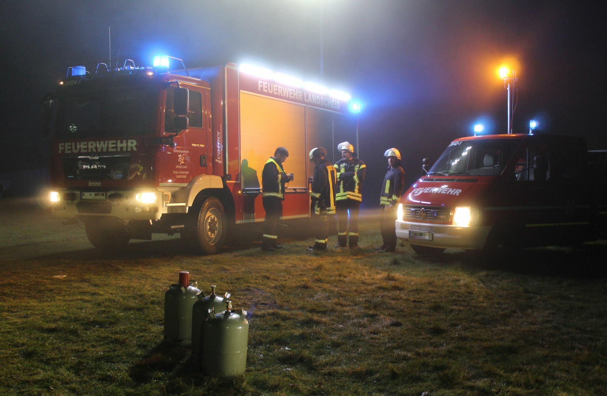 In Landscheid ist es am Montag gegen 17.10 Uhr zu einer Explosion und einer Durchzündung außerhalb der Ortschaft in einem Wohnwagen gekommen. Die Ursache ist bisher noch nicht geklärt. Die Feuerwehr vermutet, dass die Gasanlage des Wohnmobils explodiert ist. Am Einsatzort hatten die Einsatzkräfte drei Gasflaschen geborgen.