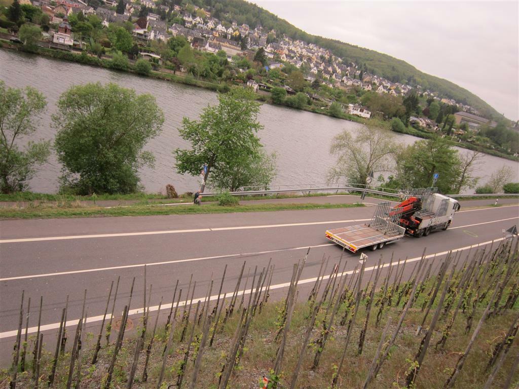 Die Frau aus dem Stadtgebiet war mit ihrem Fahrrad in Richtung Zeltingen unterwegs. Am Stadtausgang wollte sie vermutlich von der dortigen rechten Mehrzweckspur kommend die Fahrbahn kreuzen, um auf den linksseitig ausgeschilderten Radweg zu wechseln. Wie die Polizei mitteilt, hat sie dabei möglicherweise nicht zurück geschaut, sondern wollte mit Handzeichen die Bundesstraße in einem Zug überqueren. Dabei übersah sie einen nachfolgenden Lastzug und wurde trotz dessen Vollbremsung vom Motorwagen erfasst und auf die Fahrbahn geschleudert. Zuvor hatte der Lkw-Fahrer noch versucht auf die Gegenfahrbahn zu lenken, um die Kollision zu verhindern. Die Frau wurde schwer verletzt und von Ersthelfern versorgt, bis Notarzt und Rettungswagen eintrafen. Später wurde der Rettungshubschrauber zum Abtransport der Verletzten in ein Trierer Krankenhaus angefordert. Die Frau trug keinen Fahrradhelm, so die bisherigen Ermittlungen vor Ort. Die Bundesstraße zwischen Bernkastel und Wehlener Brücke war für die Dauer der Rettungs- und Unfallaufnahmemaßnahmen für eine Stunde voll gesperrt. Foto: Polizei