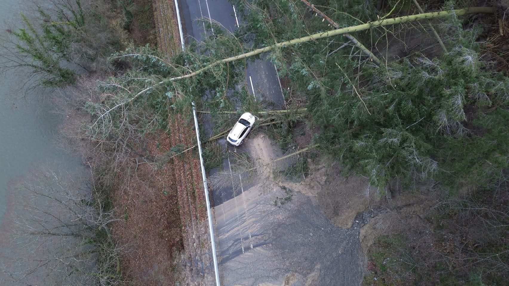 Der Hangrutsch ereignete sich in der Nacht zum 4. Februar 2024, als große Mengen Erdreich samt Bäumen auf die Bundesstraße stürzten. Untersuchungen der Staatsanwaltschaft Trier legten nahe, dass die Ursache in der Einleitung großer Wassermengen in den Hang lag. Dieses Wasser stammte aus der Entleerung eines Wasserhochbehälters, der oberhalb der B53 liegt. Zwei Mitarbeiter der Verbandsgemeindewerke hatten das Wasser über Schläuche entlang eines Wirtschaftswegs abgeleitet, um es dort versickern zu lassen.