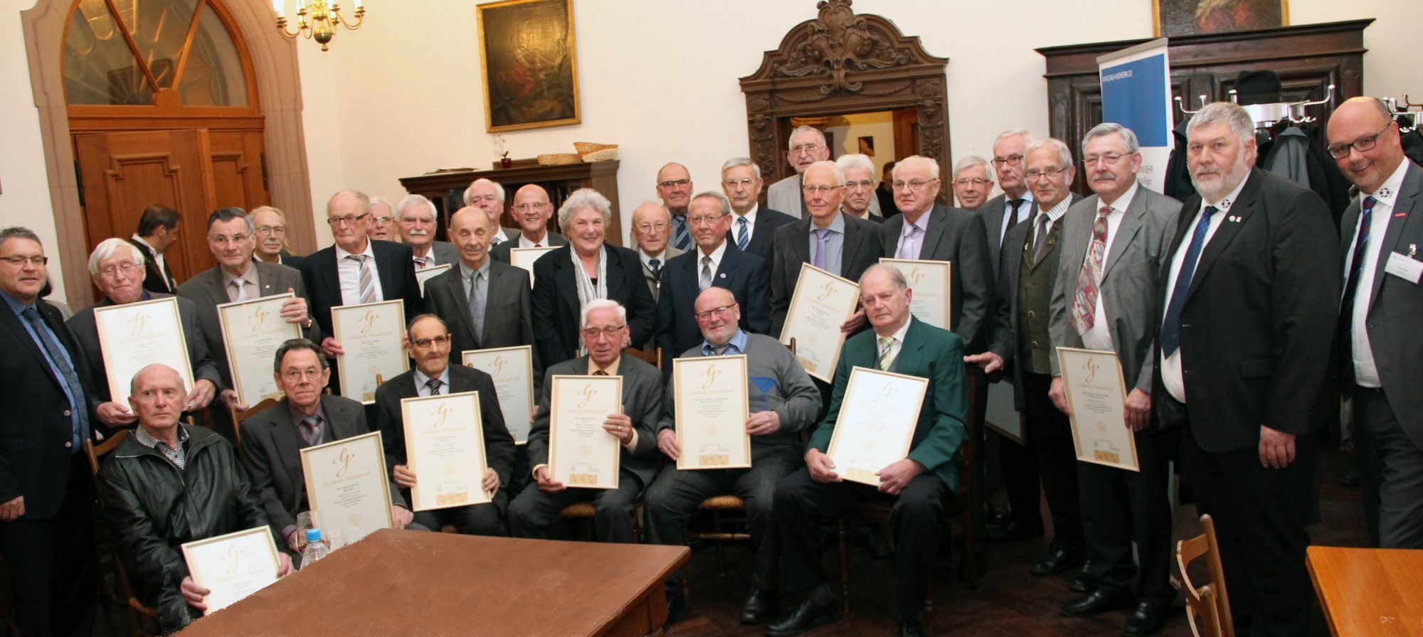 Bei der Kreishandwerkerschaft MEHR hat es gute Tradition, die Goldenen Meisterinnen und Meister des Handwerks in feierlichem Rahmen zu ehren. In diesem Jahr würdigten im Anschluss an die Delegiertentagung Vizepräsident Hermann Zahnen von der Handwerkskammer Trier und der Vorsitzende Kreishandwerksmeister Raimund Licht deren Wirken und überreichten den Goldenen Meisterbrief.