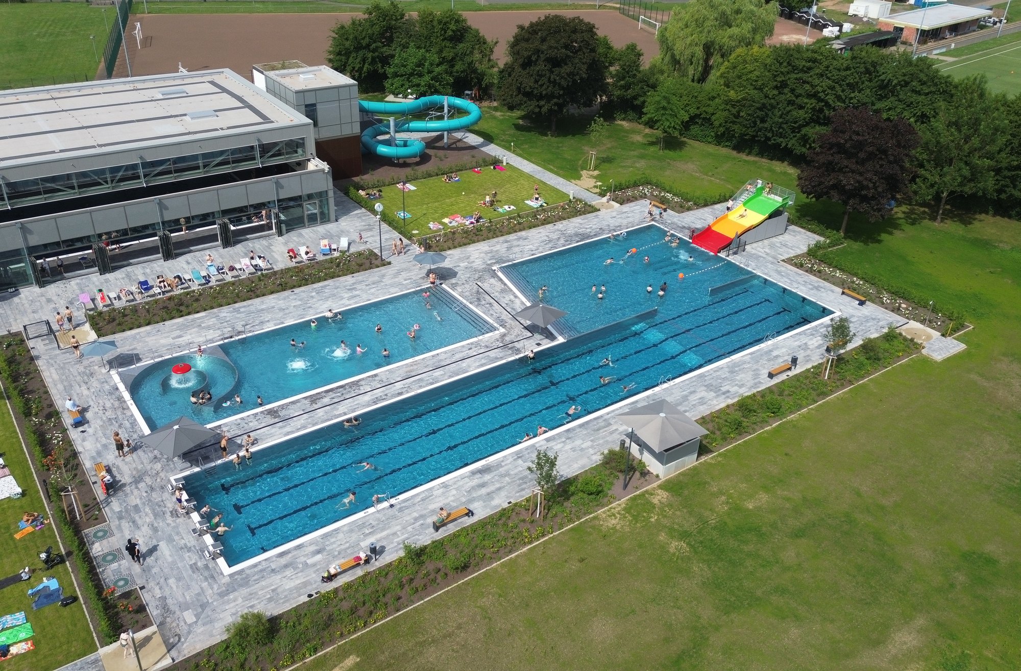 Bereits am Freitag, dem 13. Juni, hatte das große Eröffnungswochenende mit einem abwechslungsreichen Programm begonnen. Ab 12 Uhr wurden Führungen durch das hochmoderne Bad angeboten – noch ohne Schwimmbetrieb, aber mit spannenden Einblicken. Am Abend verwandelte sich das Außengelände dann in eine Afterwork-Location: Bei Livemusik der Band Klangstern, leckerem Live-Cooking und kühlen Getränken kam Vorfreude auf das große Anschwimmen auf.