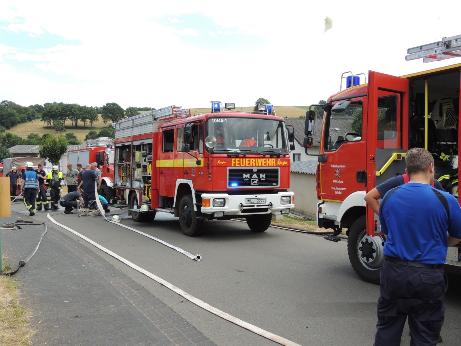 Die Wehren Sehlem, Esch, Salmtal und Hetzerath hatten den Brand schnell unter Kontrolle, sodass ein Übergreifen der Flammen auf die angrenzenden Wohnhäuser verhindert werden konnte.