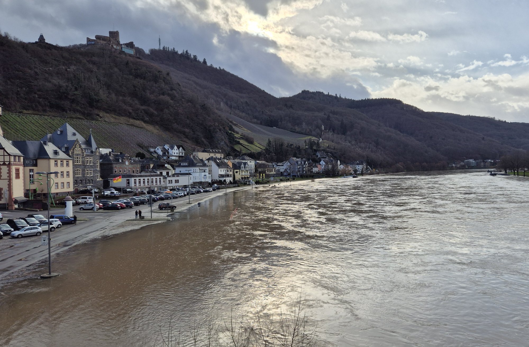 In Bernkastel-Kues wurden bereits einige Parkplätze überflutet, und auch der Minigolfplatz steht unter Wasser. Ähnliche Szenarien zeigen sich in anderen Orten entlang der Mosel: In Reil wurde der Spielplatz überschwemmt, während in Klüsserath der Campingplatz nicht mehr nutzbar ist. Zahlreiche Radwege sind inzwischen unpassierbar, und viele Straßen wurden gesperrt, da sie komplett unter Wasser stehen.
