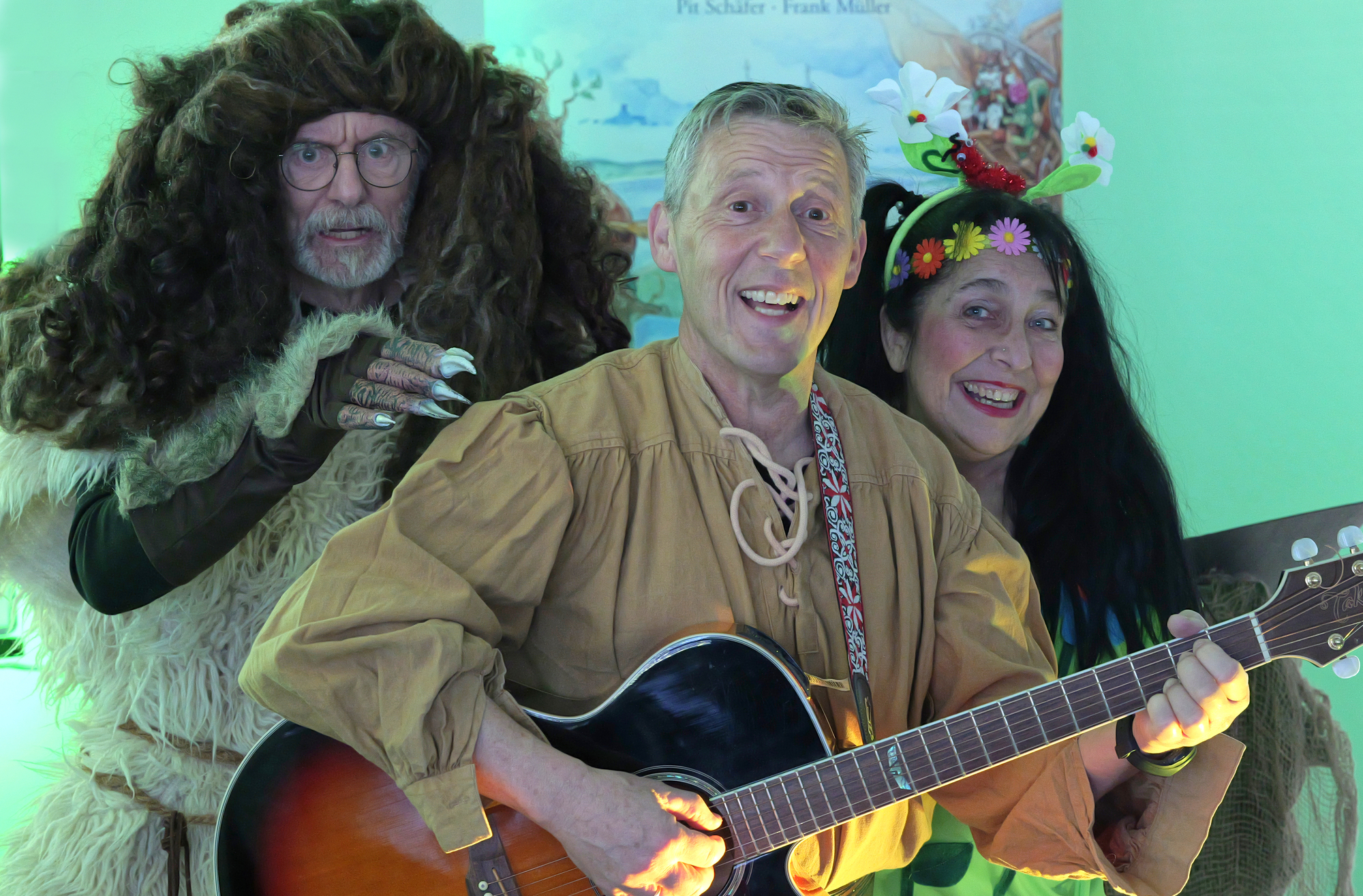 Das tun sie dann auch, die Protagonisten in der rund einstündigen, szenischen Lesung der besonderen Art: Ferdi der vegetarische Fuchs, der tollpatschige Waldtroll Joshi, Gitti Tagetes und viele andere.