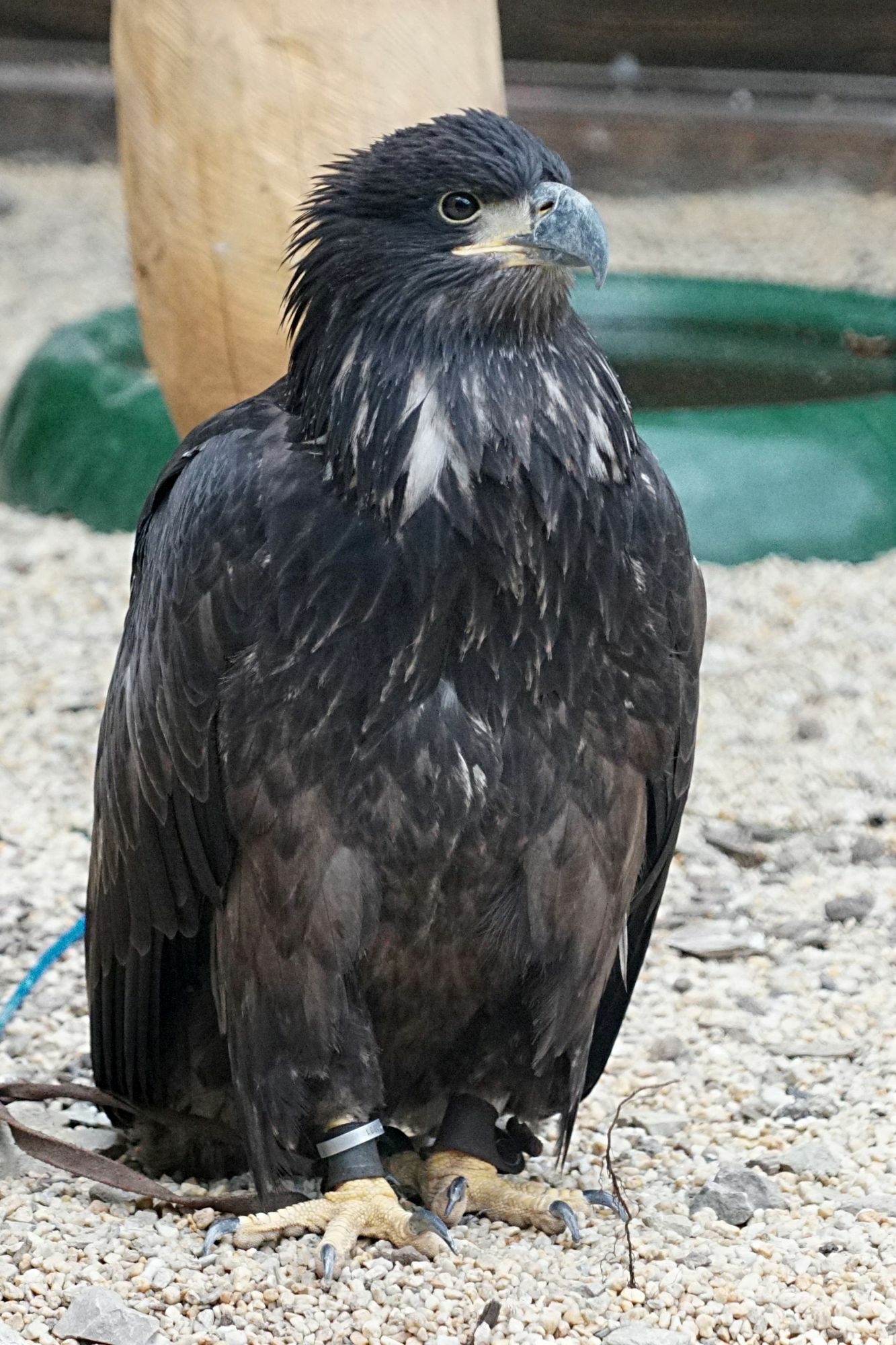 Der Eifelpark Gondorf bittet um die Hilfe der gesamten Bevölkerung. Vor einigen Tagen ist ein junger  Weißkopfseeadler während der Flugschau aus dem Park verschwunden. Der Adler hat eine Rückenlänge von ca. 1m und eine Spannweite von ca. 2,20 m. Das Gefieder ist dunkelbraun bis schwarz. Er trägt einen Lederriemen am Fuß sowie einen Artenschutzring. Der Weißkopfseeadler hat noch keinen weißen Kopf, da es sich um ein Jungtier handelt. Durch starke Winde könnte der Adler sich bereits über 50 Kilometer weit entfernt befinden. Hinweis: Der Adler ist leicht zu verwechseln mit einem Bussard, er ist jedoch viel größer. Konkrete Hinweise sind erbeten an das Eifelpark Büro unter Tel. 06565 / 956 60. Foto: Eifelpark