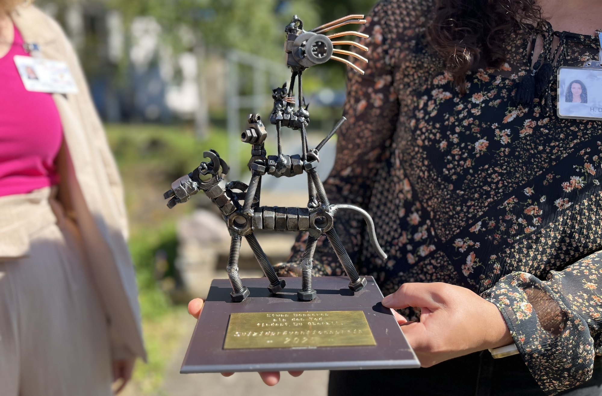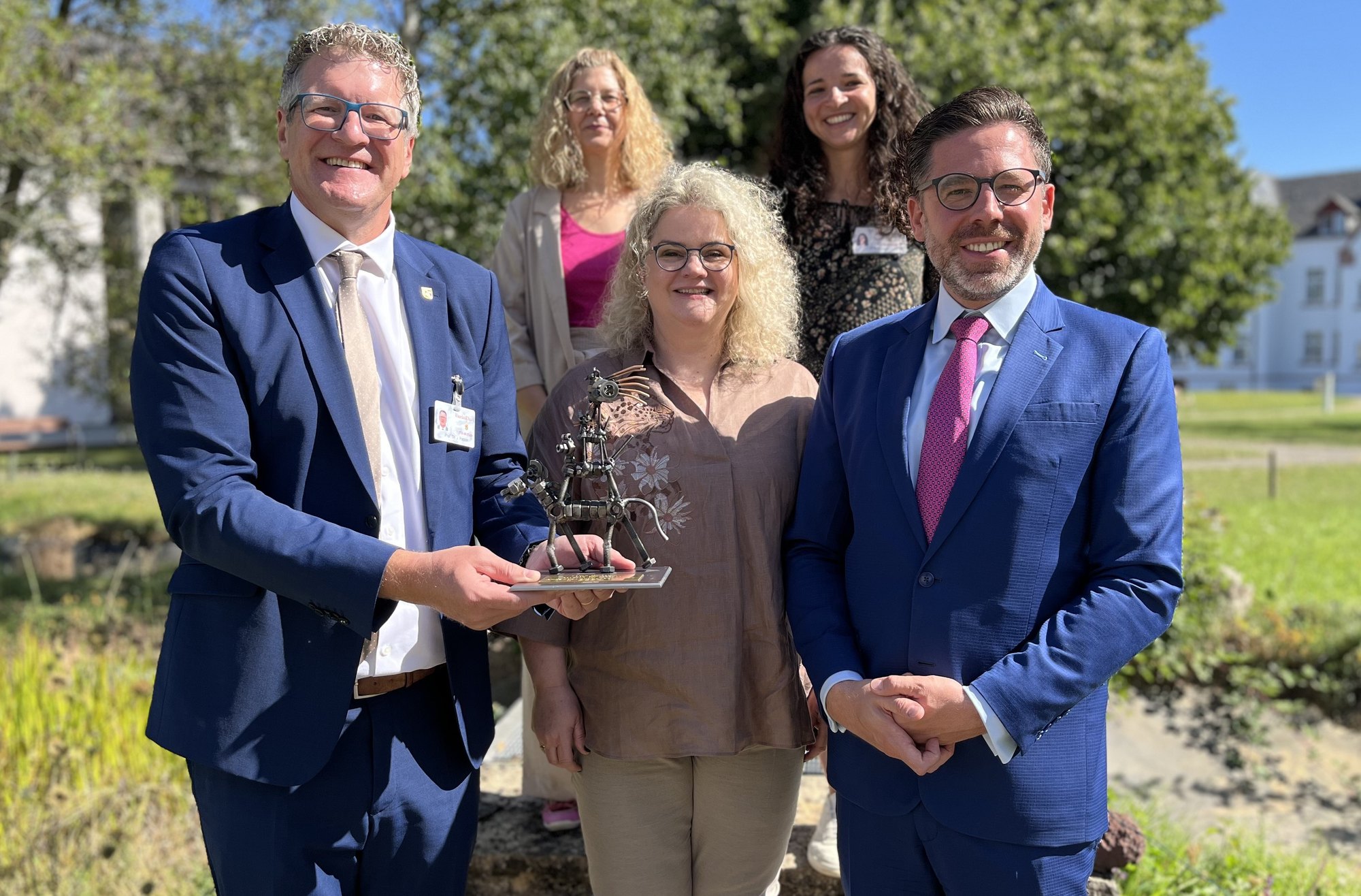 Minister Fernis gratulierte den Bediensteten der Anstalt und würdigte deren Engagement: „Die Mitarbeiterinnen und Mitarbeiter unseres Justizvollzugs beeindrucken mich immer wieder mit kreativen und zukunftsorientierten Projekten und Ideen. Ich freue mich daher ganz besonders, dass Sie hier in Wittlich heute einen ganz besonderen Preis entgegennehmen dürfen. Damit wird Ihr großer Einsatz im Bereich der Suizidprävention gewürdigt. Dass es sich um eine Skulptur der Bremer Stadtmusikanten handelt, finde ich besonders passend. Denn Ihr Erfolg bei der Suizidprävention ist nur dank des hier herrschenden Teamgeistes möglich. Unter Einbindung aller Berufsbereiche haben Sie ein auf die speziellen Bedürfnisse und Herausforderungen zugeschnittenes Konzept erarbeitet, bei dem zahlreiche verschiedene Bausteine des Umgangs mit Gefangenen miteinander verzahnt werden. Für den Einsatz aller Beteiligten möchte ich mich ganz ausdrücklich bedanken. Sie leisten einen besonderen Beitrag für die Gesellschaft und können auf Ihre heutige Auszeichnung stolz sein!“