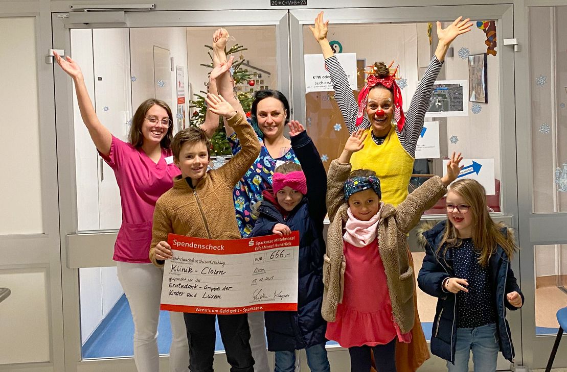 Mit großer Freude besuchten die Lüxemer Erntedank-Kinder die Kinderstation des Verbundkrankenhauses Bernkastel-Wittlich. Sie brachten eine beeindruckende Spende mit, die sie durch ihre traditionelle Ernte-Dank-Sammelaktion gesammelt hatten. Dank ihres großartigen Engagements und der hohen Spendenbereitschaft der Lüxemer Bürger kamen so mehr als 660 Euro für das Verbundkrankenhaus zusammen, die die Kinder der Klinikclownin "Mathilda Krümmel" übergaben. Stolz erzählten sie von der Erntedank-Sammelaktion, was alles gespendet wurde und dass sie mit ihrer Spende gerne anderen Kindern, denen es nicht so gut geht, eine Freude bereiten wollen. Der Klinik-Clown führte anschließend spannende Kunststücke und faszinierende Zaubertricks vor, was die Kinder zum Staunen brachte.