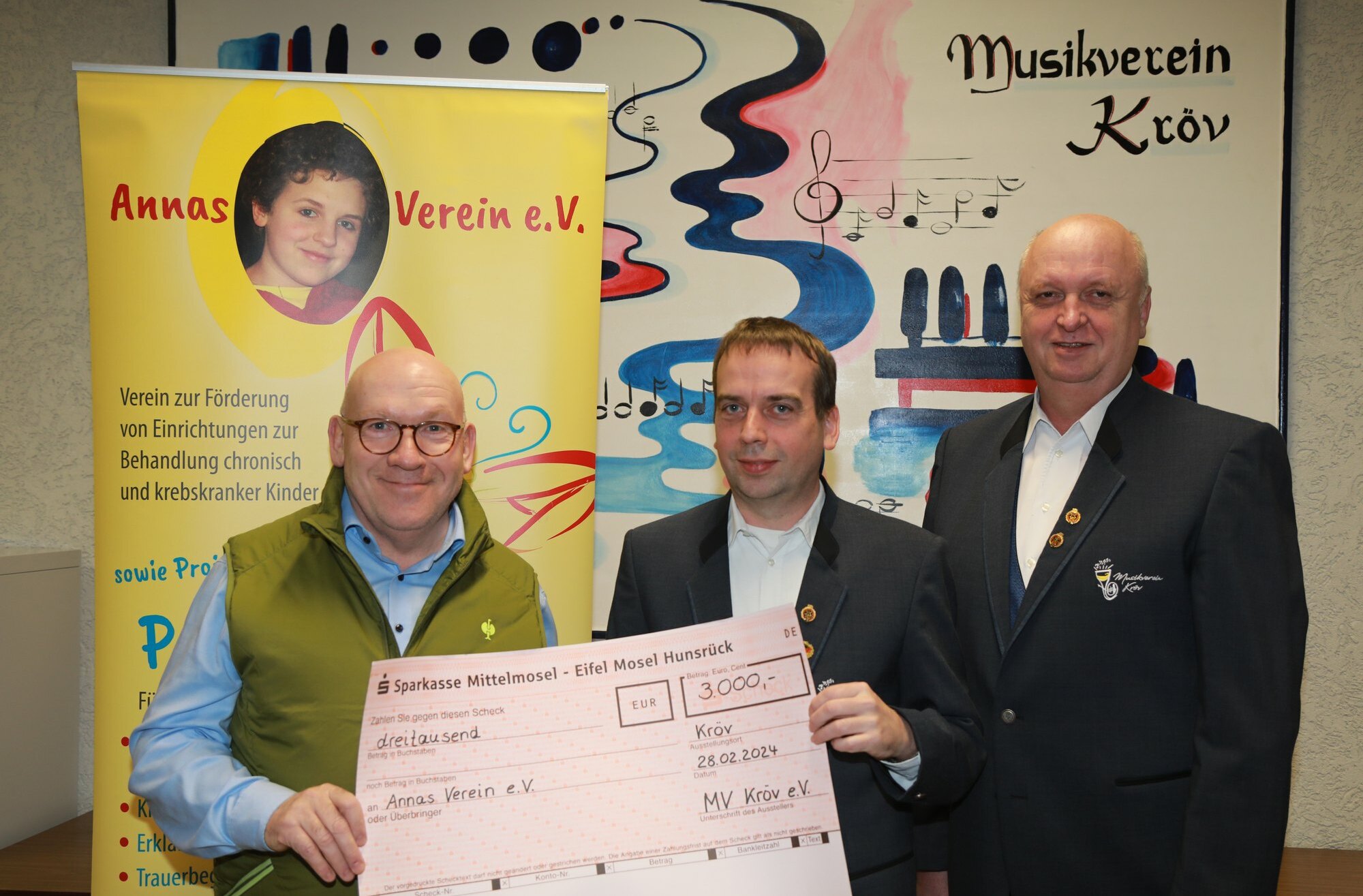 Anfang des Jahres veranstaltete der Musikverein Kröv ein Benefizkonzert mit dem Landespolizeiorchester Rheinland-Pfalz in der Weinbrunnenhalle. Der Erlös des Konzertes war bestimmt für die musikalische Ausbildung von Jugendlichen im Musikverein und für AnnasVerein in Burgen bei Bernkastel-Kues.