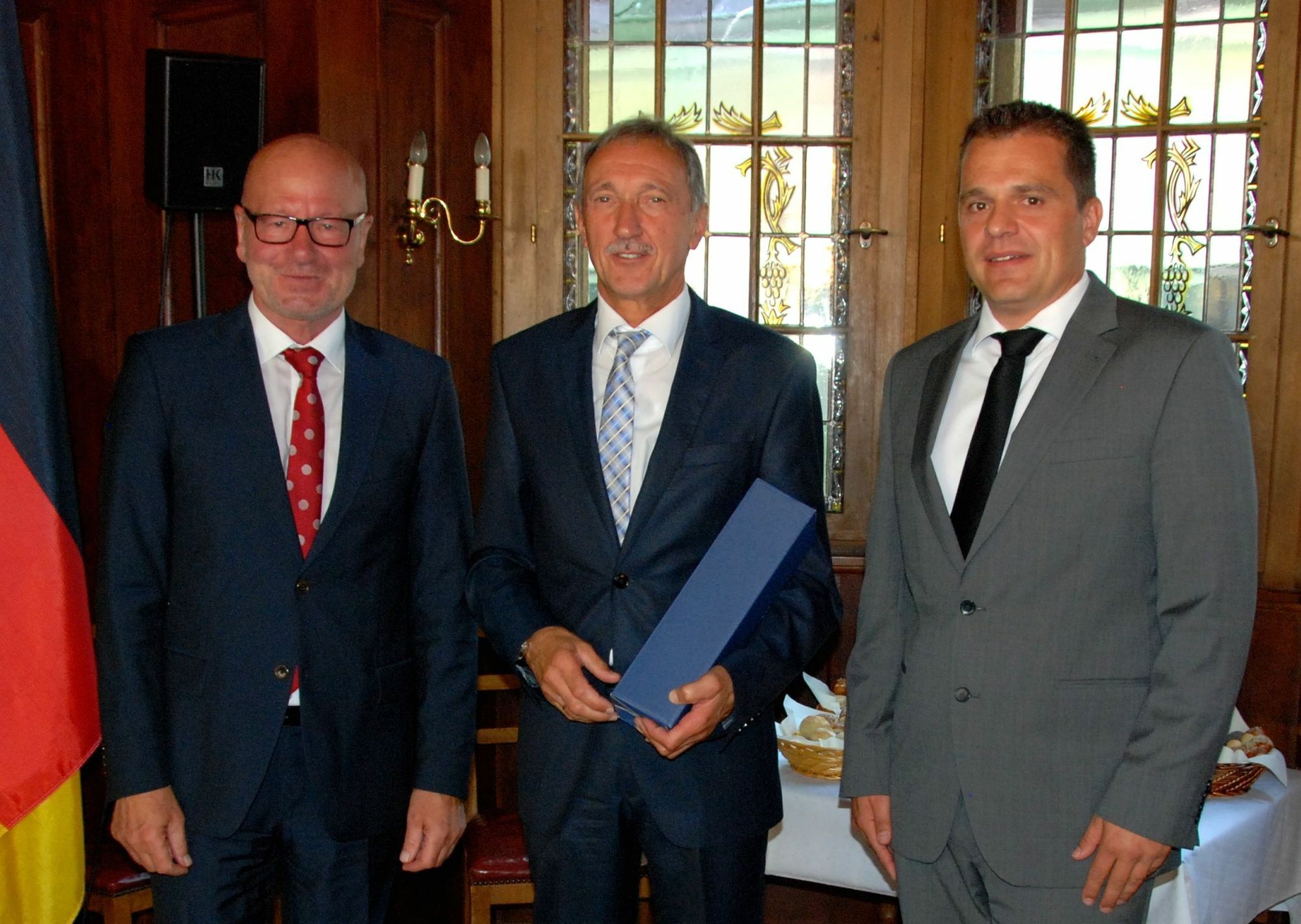 Die Kriminalinspektion Wittlich ist seit dem 1. September 2016 unter einer neuen Leitung. Kriminalrat Ralf Durben übernahm dieses Amt von seinem Vorgänger, Kriminaldirektor Roland Maurer, der bereits zum 1. Juli zum Leiter der Kriminalinspektion Bad Kreuznach bestellt worden war. Am Mittwoch, 5. Oktober, fand eine Feierstunde zu diesem Wechsel im Alten Rathaus der Stadt Wittlich statt. Polizeipräsident Lothar Schömann verabschiedete Kriminaldirektor Maurer und begrüßte Kriminalrat Durben. Mit dem 42-jährigen Ralf Durben hat die Kriminalinspektion Wittlich nun nach zwei Monaten Vakanz wieder einen Leiter. Kriminalrat Durben, der 1994 in den Dienst des Landes Rheinland-Pfalz trat, sammelte zunächst Erfahrungen bei der Bereitschaftspolizei Koblenz und anschließend im Wechselschichtdienst der Polizeiinspektion Remagen. 2002 wechselte der im Landkreis Ahrweiler wohnende Kriminalrat zur Kriminalpolizei. Einbruch, Kapitaldelikte, Homejacking und Intensivtäter waren hier sein Metier. Sein Studium an der Polizei-Führungsakademie in Münster absolvierte Ralf Durben bis Ende Juni 2013. Insbesondere den Studierenden der Hochschule der Polizei stand er anschließend mit seinem Wissen mit Rat und Tat als Dozent zur Seite, bevor es ihn nun zum 1. September wieder in die Praxis zog und er die Leitung der Kriminalinspektion Wittlich übernahm. Der 59-jährige Roland Maurer war für die Mitarbeiterinnen und Mitarbeiter, aber auch für die Bürgerinnen und Bürger im Dienstbezirk der Kriminalinspektion Wittlich für die letzten drei Jahre Ansprechpartner als Leiter der Kriminalinspektion Wittlich. Eingestellt in den Polizeidienst wurde er 1974. Maurer kam 2003 als Leiter zur Kriminalinspektion Idar-Oberstein und wechselte von dort nach zehn Jahren zur Kripo in Wittlich. Seit dem 1. Juli 2016 leitet Roland Maurer die Kriminalinspektion Bad Kreuznach. Das Foto zeigt v.l.n.r.: Polizeipräsident Lothar Schömann, KD Roland Maurer und KR Ralf Durben. Foto: Polizei