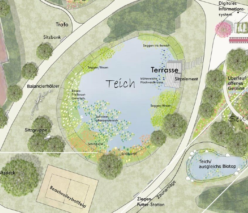Die Rodungsarbeiten werden mit der dem Ort angemessenen Sensibilität durchgeführt. So werden zum Beispiel erhaltenswerte Bäume freigestellt, um diese in die spätere Gestaltung mit einzubinden. Die neu entstehenden Gehölzränder werden außerdem naturnah ausgebildet. Die Arbeiten erfolgen durch eine qualifizierte Fachfirma, die durch Fachplaner aus der Forstwirtschaft und der Landschaftsarchitektur eng begleitet werden.