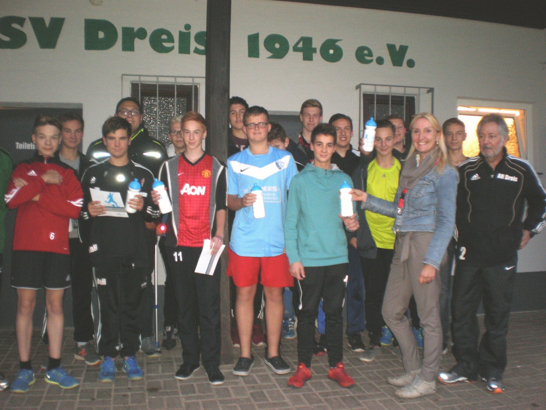 Sportwetten können in eine Abhängigkeit führen. Drei Prozent der Gesamtbevölkerung beteiligen sich an dieser Wettform, die seit Jahren zunehmend über das Internet abgewickelt wird. Bei den Mitgliedern von Fußballvereinen beträgt dieser Anteil jedoch über 50 Prozent. Insbesondere junge Menschen probieren gerne aus und erliegen oft der Illusion, als „Fußballexperte“ einen besonderen Vorteil und damit größere Gewinnchancen bei Sportwetten zu haben. Sie können so besonders leicht in den Kreislauf geraten, der letztlich zur Glücksspielsucht führt. Die Live-Wette als jüngste Form der Sportwetten hat ein besonderes Suchtrisiko. Wetten können während eines laufenden Events abgeschlossen werden. So kann z. B. während eines Fußballspiels auf den Halbzeitstand, das nächste Tor oder die nächste Rote Karte gewettet werden. Durch die Schnelligkeit wird ein Druck aufgebaut, der unüberlegte Entscheidungen begünstigt. Der Zugang zu Live-Wetten ist heute über Handy und Internet sehr einfach. Aus diesen Gründen hat die Landeszentrale für Gesundheitsförderung in Rheinland-Pfalz für den diesjährigen landesweiten Aktionstag Glücksspielsucht das Thema Sportwetten als Schwerpunkt gewählt. Unter dem Motto „Ins Abseits gespielt?“ wenden sich die Regionalen Fachstellen Glücksspielsucht an Fußballvereine ihrer Region, um die Vereine für die Gefahren von Sportwetten zu sensibilisieren. Die Fachstelle Glücksspielsucht im Caritasverband Mosel-Eifel-Hunsrück mit Sitz in Wittlich besuchte im Rahmen dieser Aktion die B-Jugend der Jugendspielgemeinschaft Untere Salm bei ihrem Training auf dem Sportplatz in Dreis. Die Mannschaft und ihre Trainer, Stefan Kohl und Arnold Klingler, erhielten Informationen zu den Gefahren von Sportwetten und durften die Trinkflaschen der LZG mit dem Motto der Aktion entgegennehmen. Im Gespräch mit der Vertreterin der Fachstelle, Diplom-Psychologin Anja Wallerius, zeigten sich die Jugendlichen sehr interessiert und beteiligten sich rege an diesem Austausch. Foto: Caritas