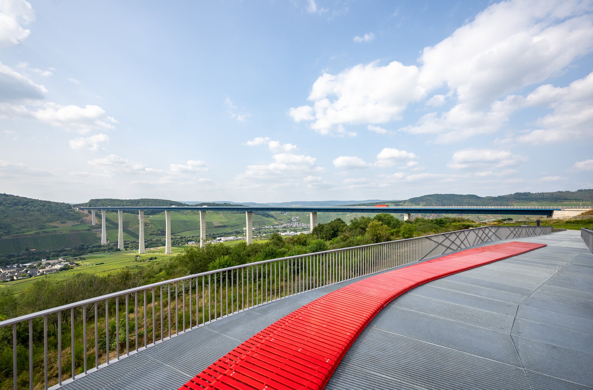 „Der Panoramasteg fügt sich in das funktionale Konzept der Rastanlage ein - und wertet es gleichzeitig auf. Er bietet den Durchreisenden zusätzlich einen beeindruckenden Ausblick und setzt so die wunderschöne, vom Weinbau geprägte Landschaft entlang der Mosel noch einmal in Szene. Wer hier eine kurze Rast einlegt, soll gerne als Gast wiederkommen“, sagte Ministerin Schmitt bei der feierlichen Eröffnung.