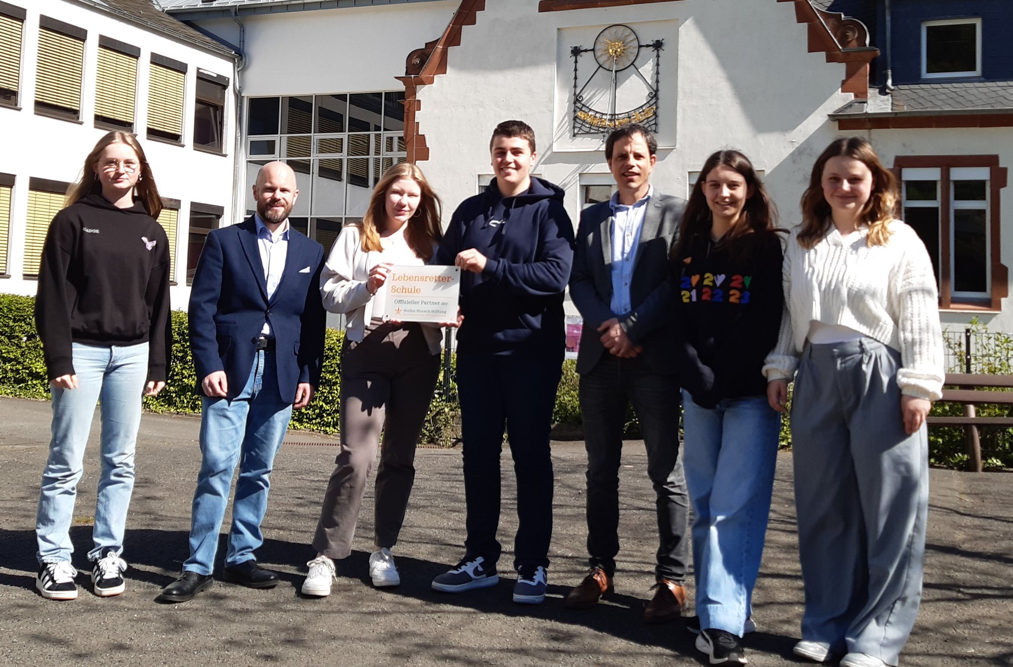 Am Gymnasium Traben-Trarbach werden nicht nur die Weichen für den Start ins Berufsleben gestellt. Ebenso wichtig ist der Schulleitung, den Jugendlichen den Stellenwert von sozialem Engagement zu vermitteln. Dafür arbeitet die Schule regelmäßig mit der Stefan-Morsch-Stiftung, Deutschlands erster Stammzellspenderdatei zusammen, um konkret für Menschen mit Blutkrebs passende Stammzellspender:innen zu finden. Mit der Übergabe des Siegels wird diese Kooperation sichtbar. Die Plakette aus Acryl-Glas trägt die Aufschrift ‚Lebensretter-Schule – Offizieller Partner der Stefan-Morsch-Stiftung‘.