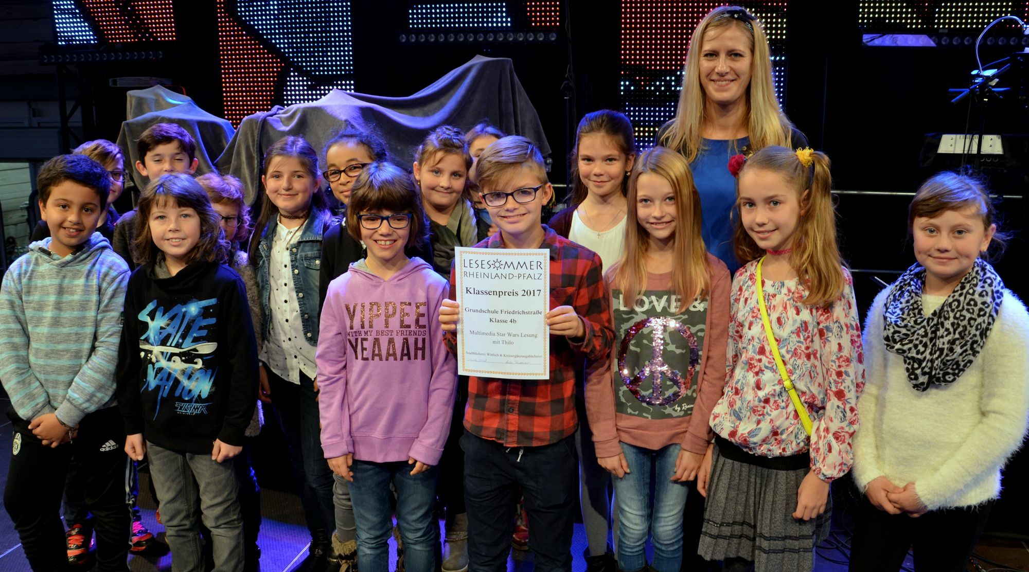 Die große Abschlussparty fand, wie auch in den vergangenen Jahren, im Bungert Oktoberfestzelt statt. Etwa 1.000 Gäste waren der Einladung gefolgt. Sie wurden vom Kreisbeigeordneten Robert Wies und dem ersten Beigeordneten der Stadt Wittlich, Albert Klein, begrüßt, die sich darüber hinaus bei den Sponsoren, namentlich der Stiftung Stadt Wittlich, der Sparkasse Mittelmosel Eifel-Mosel-Hunsrück sowie der Firma Bungert, bedankten. Nach dem ersten offiziellen Programmpunkt, folgte ein weiterer Höhepunkt: die Bekanntgabe der Gewinner aus den Kreativwettbewerben anlässlich des Jubiläums. In einem Malwettbewerb und zwei, nach Alter gestaffelten, Fotowettbewerben, konnten Nachwuchskünstler zwischen acht und 16 Jahren ihre Kreativität unter Beweis stellen. Die drei originellsten Bilder pro Kategorie gewannen Sachpreise und werden gemeinsam mit den übrigen Gemälden und Fotos ab November in der Stadt- und Kreisergänzungsbücherei Wittlich ausgestellt. Für zwischenzeitliche Unterhaltung mit beeindruckenden Showeinlagen sorgte Magier „Dan Berlin“ aus Düsseldorf. Er verzauberte nicht nur Geldscheine, Taschentücher und Münzen, sondern ließ auch Tische vom Erdboden abheben. Nach der anschließenden Verlosung, wurden die Gewinner der Klassenpreise bekannt gegeben. Hier standen die Schulklassen mit den meisten erfolgreichen Teilnehmern im Mittelpunkt. Das obige Foto zeigt eine der erfolgreichsten Lesesommer-Klassen; die Klasse 4b der Grundschule Friedrichstraße. Foto: C. Münzel