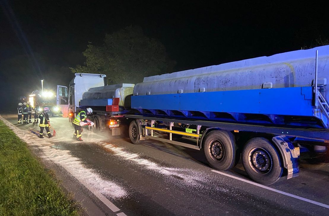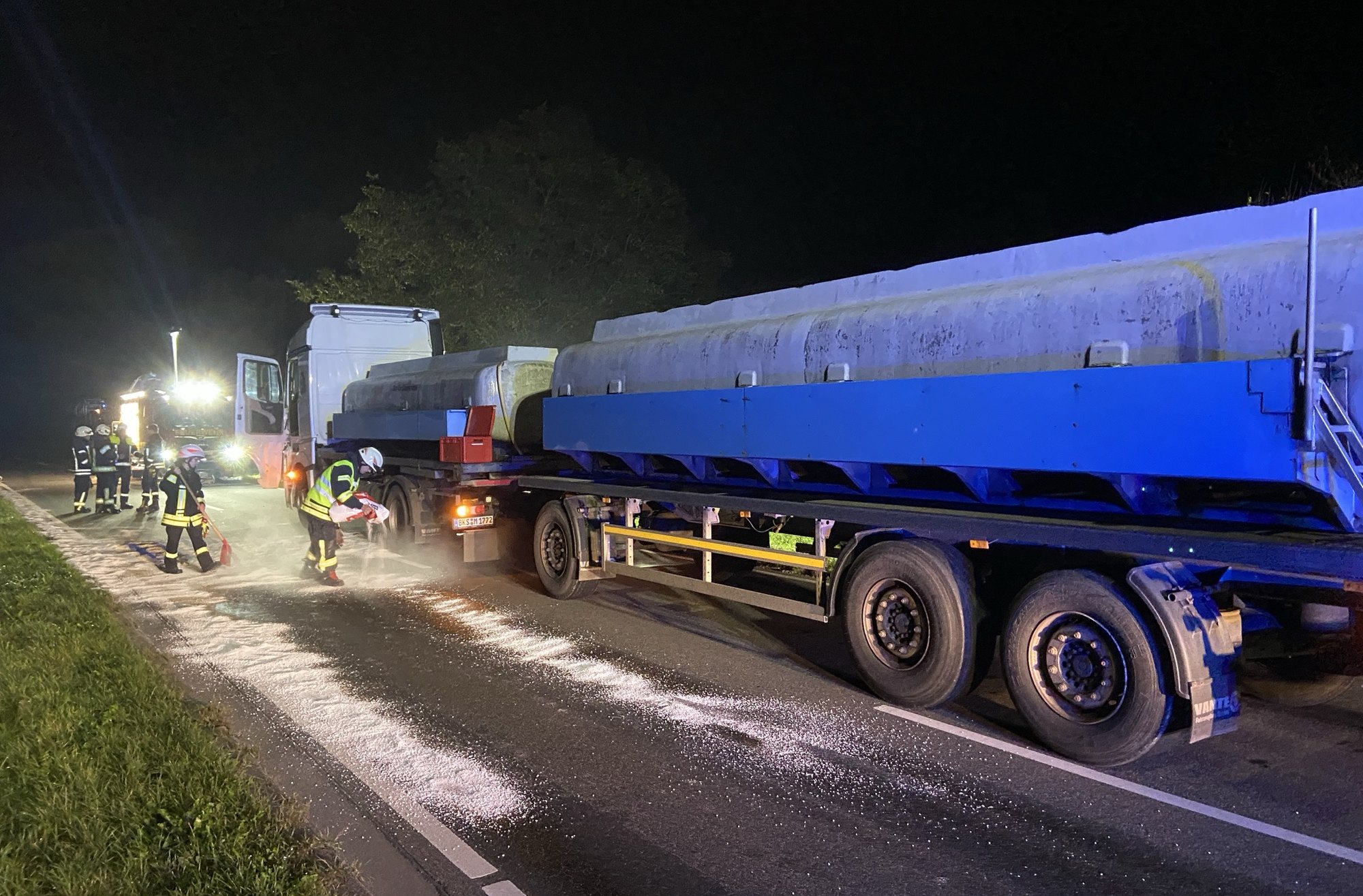 Eine größere Menge Dieselkraftstoff lief daraufhin auf die Fahrbahn. Die Feuerwehr konnte den beschädigten Tank abpumpen und provisorisch abdichten. Gemeinsam mit der Straßenmeisterei Wittlich wurde der ausgelaufene Diesel gebunden und die Straße gereinigt. Die B53 war während der Reinigungsarbeiten für etwa zwei Stunden komplett gesperrt.
