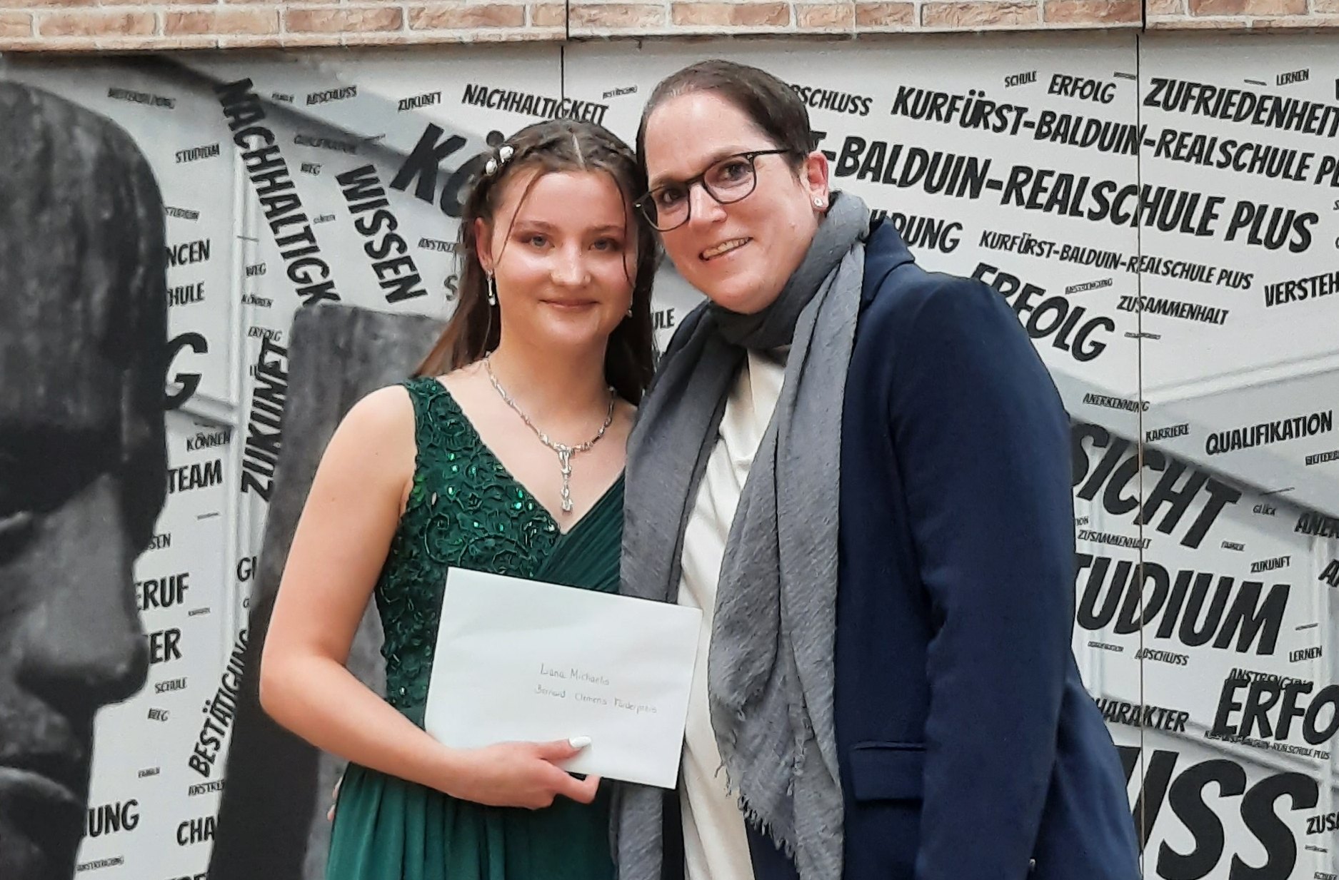 Die besten Zeugnisse in den einzelnen Klassen wurden ebenfalls mit Büchergutscheinen gewürdigt und an Rubela Ibo, Arjon Krasniqi, Valentina Bejzaku, Lena Steiner, Emily Thelen und Liana Michaelis überreicht. Liana Michaelis erhielt zudem den Bernard-Clemens-Förderpreis für den besten Realschulabschluss. Die Preisträgerin erhält einen Betrag zur freien Verfügung und zweckgebundene 2.000 Euro für einen Auslandsaufenthalt, beispielsweise einen Sprachkurs. Zum ersten Mal wurde an der Kurfürst-Balduin-Realschule plus eine Auszeichnung für besonders gute Leistungen im Fach Chemie vergeben. Leon Rodermund erhielt diesen Preis von den Chemielehrerinnen Anke Haberkamp und Ulla Schmitz. Marianna Yatsuk konnte sich über den „Hut ab!“ Preis freuen.