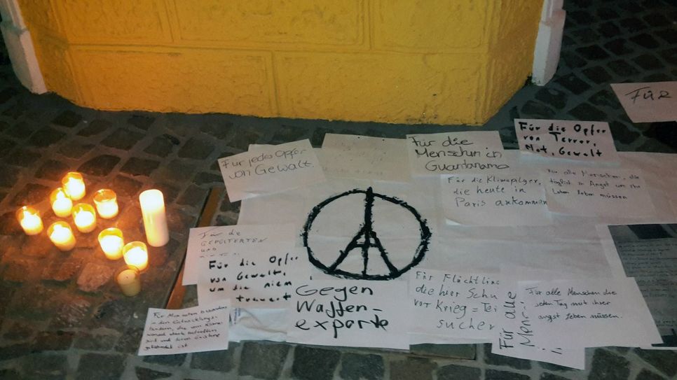 In Paris und Wittlich haben sie ein Zeichen gesetzt. Rund 25 junge Leute veranstalteten in Wittlich am 27. November eine Mahnwache gegen Terror, Not und Gewalt anlässlich der Klimakonferenz in Paris sowie der Terroranschläge in den letzten Wochen. Weitere sechs junge Erwachsene fuhren vom 26. bis 29. November nach Paris, um sich mit der Klimakonferenz und den Folgen der Anschläge näher zu befassen. Veranstalter der Mahnwache und der Parisfahrt war die FachstellePlus für Kinder- und Jugendpastoral Marienburg und Wittlich sowie der Deutsche Pfadfinder St. Georg (DPSG)-Stamm St. Rochus, Wittlich. Rund eine Stunde standen die jungen Leute am Marktplatz in Wittlich. Insgesamt nahmen rund 70 Menschen an der Mahnwache teil. Mit Lichtern schmückten sie den Platz. Auf Zettel und Papier konnten sie ihre Anliegen aufschreiben: „Für jedes Opfer von Gewalt“, steht auf einem Zettel. „Für mehr Nächstenliebe“ auf einem anderen. „Für Flüchtlinge, die hier Schutz vor Krieg und Terror suchen“, schrieb jemand. Und: Für Menschen, besonders in den Entwicklungsländern, die vom Klimawandel stark betroffen sind“. Pauline (18) aus Bergweiler war beeindruckt, „dass so viele Menschen mitgemacht haben“. Und Anna (17) aus Wittlich war bei der Mahnwache wichtig, „zu zeigen, dass Zusammenhalt wichtig ist, um gegen den Terror vorzugehen.“ Dazu brauche es Mut, und, „dass man sich nicht versteckt“. Und Marc (17) aus Flußbach war es ein Anliegen, „Solidarität für die Angehörigen der Opfer von Gewalt und Terror zu zeigen“, und darauf „aufmerksam zu machen, und ein Zeichen zu setzen“. „Interessant und beeindruckend“ fand der 21-jährige Johannes aus Föhren die Fahrt nach Paris. Die Gruppe besuchte eine Jugendkonferenz rund um den Klimaschutz. Sie traf sich mit Jugenddelegierten der Vereinten Nationen zum Gespräch, nahm an einer Menschenkette für den Klimaschutz teil und feierte einen interreligiösen Gottesdienst. Weil wegen der Anschläge Demonstrationen untersagt waren, gab es am Place de la République eine „Schuh-Demonstration“, bei der die Beteiligten ihre Schuhe auf den Platz stellten, um für den Klimaschutz einzutreten. Auch daran beteiligte sich die Gruppe. Ebenso besuchten die jungen Leute die Stätten, an denen am 13. November zahlreiche Menschen getötet wurden, um der Opfer zu gedenken. „Es war ein prägendes Erlebnis, die Folgen der Anschläge, wie erhöhte Präsenz der Polizei, verstärkte Kontrollen und die Trauer an den Orten der Anschläge zu erleben“, erklärt Matthias (20) aus Wittlich. Auch die inhaltlichen Punkte zur Klimakonferenz beeindruckten die jungen Leute. Viel werde über den Klimaschutz geredet, sagt der 21-jährige Armin aus Traben-Trarbach. „Aber die dringend nötigen Schritte eines Kurswechsels bleiben aus.“ Und so schrieben die jungen Erwachsenen Forderungen an die deutsche Umweltministerin Barbara Hendricks auf, die sie den Jugenddelegierten mitgaben. Darin fordern sie, mehr Bewusstsein zu schaffen und Aufklärung zum Klimawandel zu leisten. Der „Jugend der Welt“ sei die Ministerin Rechenschaft schuldig. „Unsere Zukunft liegt in Ihren Händen“, steht auf dem Plakat. Die Paris-Gruppe nahm zudem am gemeinsamen Abschluss des Klimapilgerns teil, das zu Fuß von Flensburg nach Paris führte. Im Bistum Trier gab es zwischen dem 1. und 12. November Etappen von Remagen, über Trier, bis Perl. www.klimapilgern.de. Fotos:privat