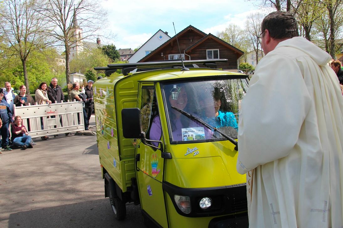Die Biker waren zu großen Teilen aus der Region, aus dem Saarland, Baden Württemberg und aus dem Ruhrgebiet. Die weiteste Anreise hatte ein Ape Fahrer aus der Schweiz. Der Ape Club "Moselbienchen" hatte bereits das ganze Wochenende an der Klausener Grillhütte verbracht und so kamen laut Organisatorin Michaela Ames Fahrzeuge auch aus Duisburg, Oberhausen, und Kaiserslautern zur Segnung. Ein neuer Rekord bei der Motorradwallfahrt: Das jüngste Kind, dass auf dem Motorrad mitgefahren ist, war Johann Lex mit gerade mal drei Monaten. Selbstverständlich sicher auf dem Schoss von Mutter Julia. Für Vater Sebastian Lex war dies ein ganz besonderer Moment: Mit einem Jahr fuhr er selber als Kind in dem gleichen Motorrad und seinem Beiwagen mit. Der Vater von Sebastian Lex (Rainer Lex) war mit den Motorradfreunden Klausen im Gründungsteam der Klausener Motorradwallfahrt und hat seinen Sohn Sebastian im Alter von einem Jahr im Beiwagen des selben Motorrads mit bei der Wallfahrt gehabt.
