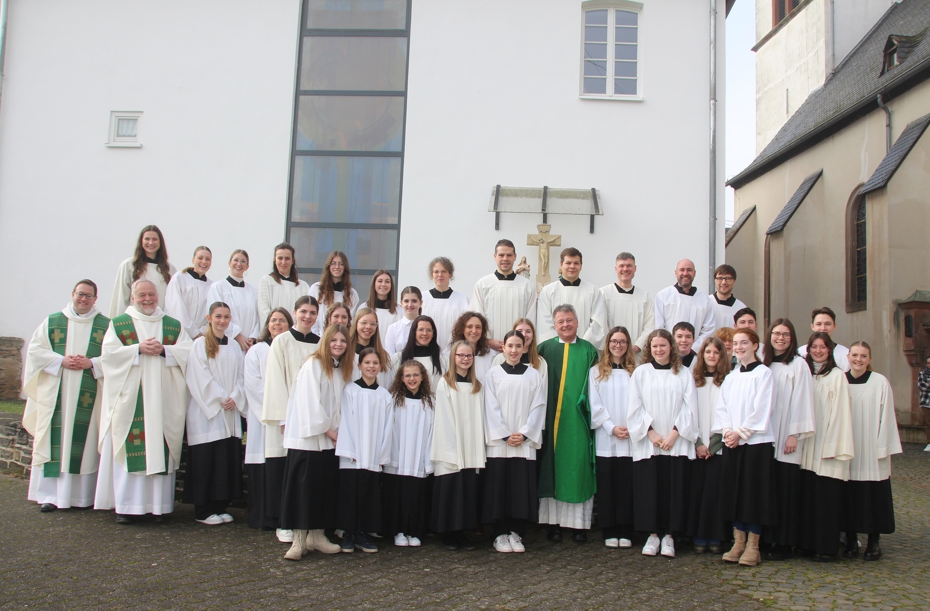 Beim großen Einzug zur Sonntagsmesse überraschten den scheidenden Pastor fast 50 Messdiener und begleiteten ihn zum Altar, angefangen bei den jüngsten bis zu den Messdienern der ersten Stunde, darunter der Piesporter Ortsbürgermeister, die Weinkönigin, Vereinsvertreter und Mitglieder des Ortsgemeinderates. Die Alterspanne reichte von zehn bis über 45 Jahre.