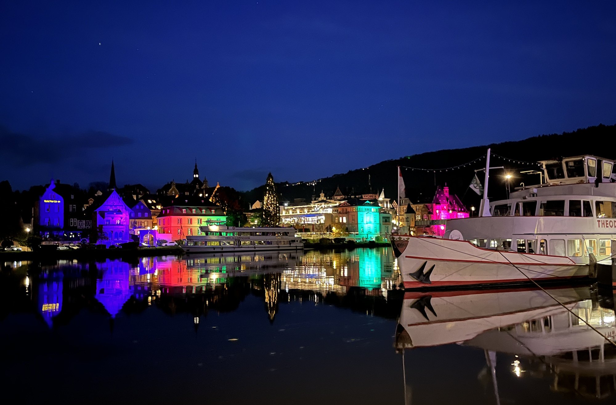 Im Kreuzgratgewölbekeller des Hotels Moselschlösschen sowie im historischen Säulenkeller aus dem Jahr 1754 stellen verschiedene Anbieter aus. Im Innenhof befindet sich ein über 25 Meter hoher Mammutbaum, der seit 2024 mit rund 7.000 Lichtern beleuchtet wird. Auf der Moselterrasse werden Speisen und Getränke angeboten.