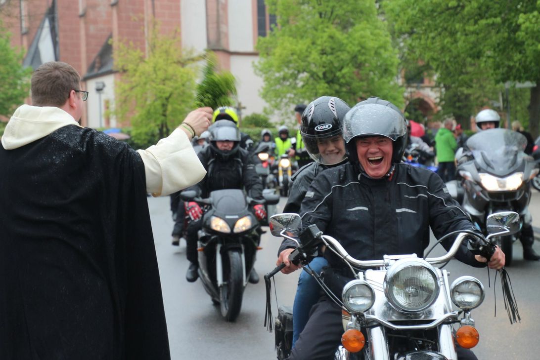 Für viele der Biker war die diesjährige Motorradwallfahrt in Klausen eine wahre Herzenssache. Sie kamen trotz des schlechten Wetters und trotz der vielen abgesagten Motorradtouren aus den unterschiedlichsten Landkreisen und Städten in den beliebten Wallfahrtsort. Neben Kennzeichen aus Kleve, Cochem, Sankt Wendel, Siegburg, Bitburg, Daun, Trier und Wittlich, war sogar ein Biker aus dem Ruhrgebiet, namentlich aus Unna, angereist. Die besondere Atmosphäre bringe ihn jedes Jahr wieder nach Klausen und er verbinde dies gerne mit einem Kurzurlaub in der Region. Auch für Jesus eine "Herzenssache“ Stichwort „Herzenssache“ - davon sprach auch Wallfahrtsrektor Pater Albert Seul OP, als er in seiner Predigt diesmal vom guten Hirten erzählte: "Der gute Hirte, für den bin ich kein Pflichtprogramm, sondern Herzenssache. Im Herzen von Jesus sind wir alle drin und sind nicht Fälle aus einem Lehrbuch, sondern Herzenssache. In diesem Herzen haben auch die Verkehrsteilnehmer platzt die mich gerade nerven. Deshalb sollte auch jeder ein Herz für den anderen haben." Und noch eine weitere Botschaft hatte der Dominikanerpater dabei: "Aber auch die Flüchtlinge haben Platz im Herzen von Jesu. Sein Herz ist weit wie die ganze Welt. Folgen wir nicht Menschen die andere ausgrenzen, sondern einschließen." Weihwasserduschen und Mundartmusik Bei der Segnung der Motorräder gab es wie versprochen Weihwasserduschen von Pater Albert Seul, damit die Allzeit-Gute-Fahrt sicher gelingen mag. In diesem Jahr half ihm sein Mainzer Mitbruder Pater Dr. Frank Everszumrode OP bei der Segnung und zeigte sich ob der Stimmung und des großen Zulaufs begeistert. Die Trierer Mundartband Leiendecker Bloas begleitete neben dem Gottesdienst auch die Segnung musikalisch und gab zur Freude der Anwesenden Wallfahrtsbesucher nach Rückkehr des Korsos noch ein Konzert im Park neben der Wallfahrtskirche. Die nächste Motorradwallfahrt findet im nächsten Jahr, abermals am letzten Sonntag im April (29. April 2018) statt. Foto: FF.