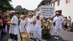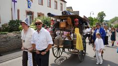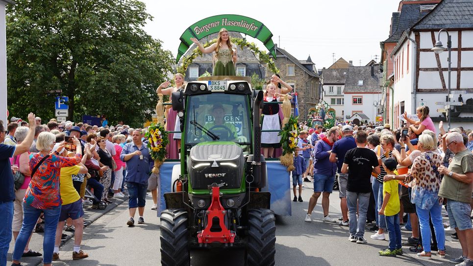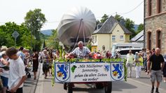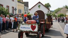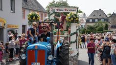 Am Mittwoch stand das Highlight des Festes auf dem Programm: Der große Festumzug zog am Nachmittag durch die Straßen des Ortes und begeisterte Besucher wie Einheimische. Insgesamt 17 festlich geschmückte Gruppen nahmen am Umzug teil - darunter zahlreiche Wagen, Fußgruppen und auch mehrere Weinköniginnen, die winkend durch die Straßen fuhren.