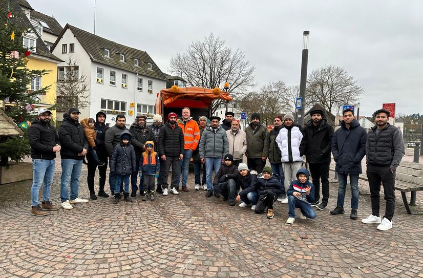 Nach dem gemeinsamen Frühstück ging es für die Gemeindemitglieder gestärkt in die Innenstadt. Dort unterstützte man die Stadtwerke Wittlich bei der Reinigung der Straßen. Ausgestattet mit Greifzangen und Müllsäcken befreiten die überwiegend jungen Muslime die Straßen vom Müll aus der Silvesternacht. Auch die Kinder der Gemeinde halfen fleißig mit.