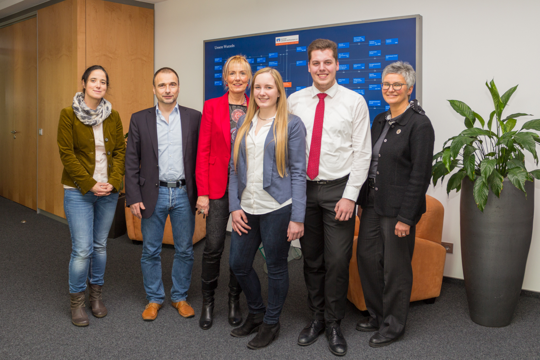 Die Bildungswege junger Leute haben sich in den letzten Jahren stark verändert. Es gibt mehr Möglichkeiten und und flexiblere Modelle wie Ausbildung funktionieren kann. So entscheidet schon längst nicht mehr die Schulform alleine darüber, ob jemand Abitur machen kann oder ob es danach zur Uni oder in die berufliche Praxis geht. Nach wie vor wählen viele Abiturienten den klassischen Weg des Hochschulstudiums. Doch auch immer häufiger ziehen junge Leute eine praktische Ausbildung vor. Wichtiger Partner bei einer beruflichen Ausbildung ist das Berufliche Gymnasium Wittlich. Das eher technische Profil der Schule ist für viele Unternehmen, die selbst nicht direkt im technischen Bereich agieren, dabei kein Hindernis. Im Gegenteil. Auch bei Ausbildern wie der Vereinigten Volksbank Raiffeisen Bank sind junge Menschen, die IT-Fachwissen vorweisen können, angesichts der immer bedeutender werdenden technischen Abläufe im Bankwesen sehr willkommen. Berufsausbildung statt überfüllte Uni Dass eine Ausbildung manchmal die bessere Wahl ist, zeigt sich am Beispiel von Regina Daniels und Florian Kaspari. Sie haben nach dem Abitur am Technischen Gymnasium ihre Ausbildung als Bankkauffrau bzw. -mann bei der Vereinigten Volksbank Raiffeisenbank angefangen und sind bis heute sehr zufrieden mit ihrer Entscheidung. Florian Kaspari schwärmt von der offenen und freundlichen Stimmung unter den Mitarbeitern und ist vor allem von der Vielseitigkeit seiner Ausbildung angetan und der Tatsache, dass er in alle Bereiche und Abteilungen Einblicke erhält. Regina Daniels hat ihre Ausbildung vor einigen Wochen erfolgreich abgeschlossen. Sie meint zu der Arbeit in der Bank: "Für mich ist es das Beste, dass ich mit interessanten Menschen zusammenarbeiten darf. Teamarbeit wird großgeschrieben und gleichzeitig kann ich selbstständig arbeiten und vieles gestalten." Daniels wurde von der Bank direkt im Anschluss in den Bereich Betriebsorganisation übernommen und wird sich nun auf diese Stelle spezialisieren. Oder: Ausbildung und Uni Wie viele Abiturienten würde auch sie sich immer wieder für eine Ausbildung nach dem Abitur entscheiden. Für sie sind die passgenauen berufsbegleitenden Seminare und Schulungen ein enormer Vorteil gegenüber anderen Ausbildungsformen. Sie geben ihr die Möglichkeit, sich weiter zu qualifizieren und zu entwickeln. Ob nach der Ausbildung sofort der Einstieg in das Berufsleben erfolgt oder doch noch ein Studium angestrebt wird, das kann jeder im Anschluss daran immer noch für sich entscheiden. Das Berufliche Gymnasium ist wichtiger Partner in Sachen Berufsausbildung, insbesondere für die Unternehmen der Region. Allerdings verliert die Schule nicht aus den Augen, dass es bei der richtigen Förderung junger Leute immer auch um individuelle Entscheidungsprozesse geht. Oberstufenleiter Gregor Jahn bekräftigt: "Wir möchten unseren Schülern des Beruflichen Gymnasiums frühzeitig Wege in ein Studium oder in eine betriebliche Ausbildung gleichberechtigt aufzeigen." Die Kooperation mit regionalen Betrieben soll in diesem Sinne den Schulabgängern den Weg ins Berufsleben erleichtern und attraktive Perspektiven für die Zukunft aufzeigen. Im Bild: Regina Daniels und Florian Kaspari mit Ausbildungsleiterin Silke Otten und den Lehrern der Berufsbildenden Schule Wittlich. Foto: FF