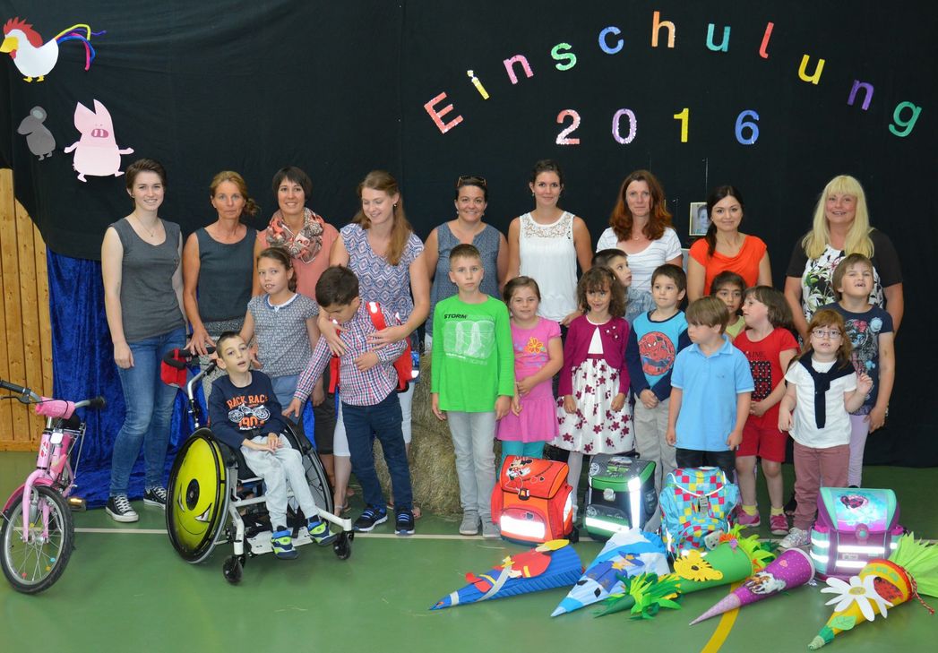 Auch in der Rosenbergschule hat das neue Schuljahr begonnen. Das Foto zeigt die Unterstufenklassen 1 und 2 mit den Einschulungskindern von 2016: Mehdi Altun, Francois Cossé, Lena Herges, Joanna Kirchen und Lukas Schweidler.  Foto: FF