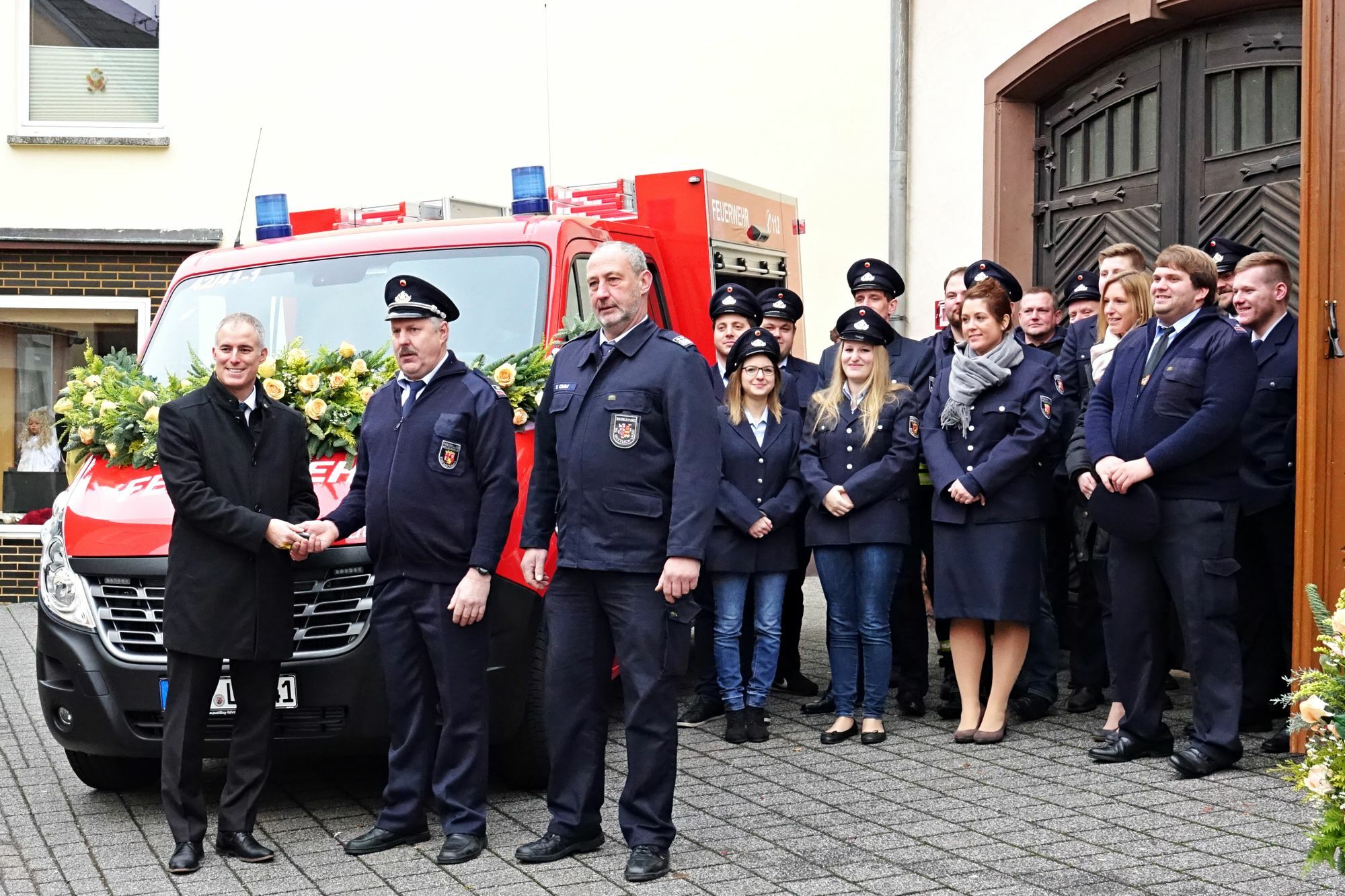 Zum 128. Gründungstag der Feuerwehr Eisenschmitt konnte Bürgermeister Dennis Junk der Freiwilligen Feuerwehr Eisenschmitt im Beisein von zahlreichen Mandats- und Funktionsträgern sowie Bürgern ein neues Tragkraftspritzenfahrzeug übergeben. Bei dem Fahrzeug handelt es sich um einen Renault Master mit einem feuerwehrtechnischen Aufbau der Firma Pütting aus Rees-Haffen. Aufgrund eines Verkehrsunfalles musste das bisherige Fahrzeug ersetzt werden. Die Kosten für das neue Einsatzfahrzeug belaufen sich auf 50.848,91 Euro. Das Land Rheinland-Pfalz hat einen Zuschuss in Höhe von 19.000,00 Euro in Aussicht gestellt. Die restlichen Kosten wurden durch die Versicherungsleistungen und den Verkauf des Unfallfahrzeuges gedeckt. Bürgermeister Dennis Junk dankte den Feuerwehrmitgliedern für ihre Einsatzbereitschaft und wünschte allzeit gute Fahrt. Im Anschluss an die Schlüsselübergabe erteilte Pastor Komes dem Fahrzeug den kirchlichen Segen und erbat Gottes Schutz für die Feuerwehrangehörigen. (red.)