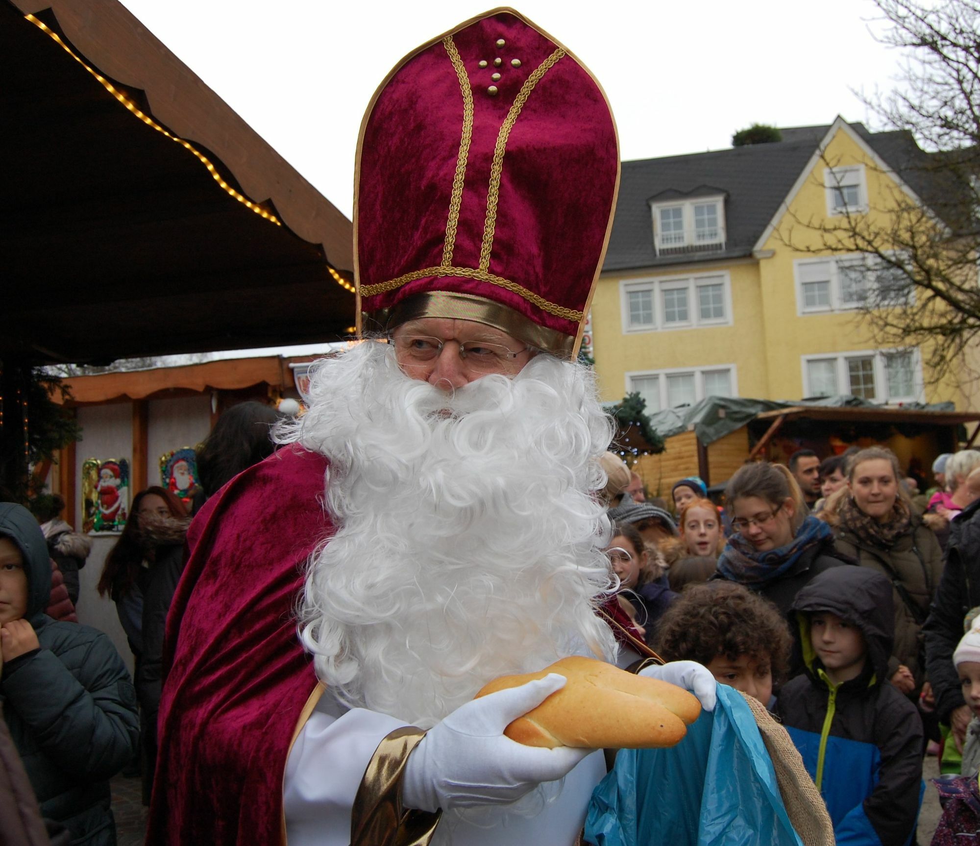 Nikolaus verteilt Weckmänner an Kinder in Wittlich