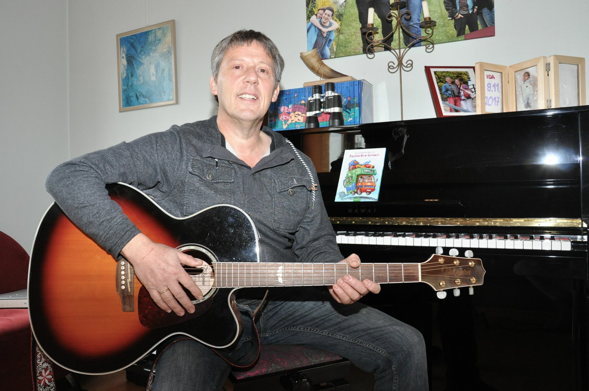 Kreativ in vielen Bereichen: Pit Schäfer brachte sich das Gitarren- und Klavierspiel selber bei, schrieb und vertonte bisher 50 Lieder. Ehrensache, dass er auch eine Melodie für »Paulinchen Geranie« komponierte. Foto: Stephanie Baumann