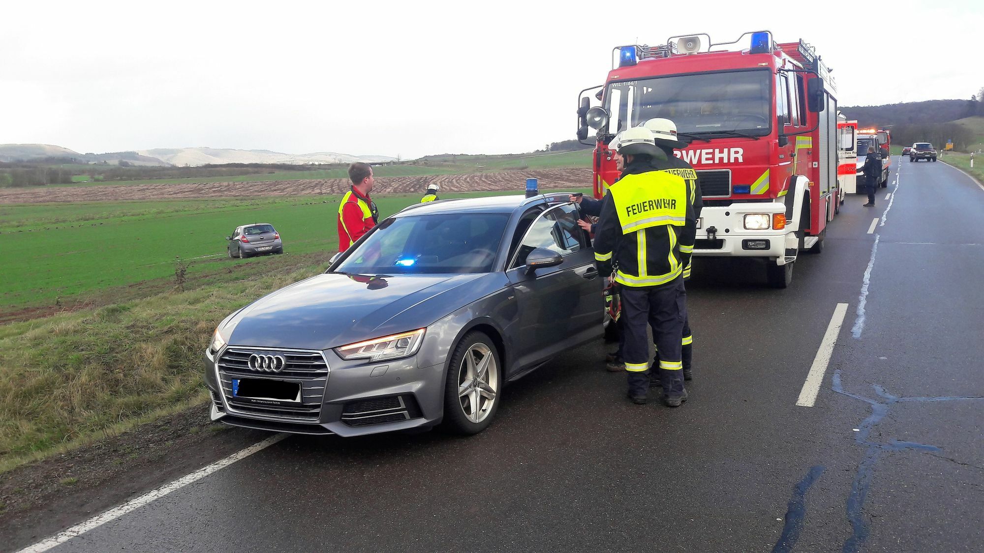 Zu einem Verkehrsunfall kam es am Mittwoch, 3. Januar gegen 11.10 Uhr auf der L 43. Eine ältere Frau befuhr die Landstraße von Dreis kommend in Richtung L 141 Wittlich, als sie aus noch ungeklärter Ursache nach links von der Fahrbahn abkam, eine Böschung hinunterfuhr und auf einer Wiese zum Stehen kam. Nach Angaben der Polizei Wittlich wurde die Frau dabei leicht verletzt. Sie wurde mit dem Rettungswagen in ein Krankenhaus gebracht. An dem Wagen entstand ein Schaden in unbekannter Höhe. Die L 43 war während der Rettungs und Bergungsarbeiten einseitig gesperrt. Im Einsatz waren die Feuerwehr und das DRK aus Wittlich mit Notarzt. Foto: Geidies